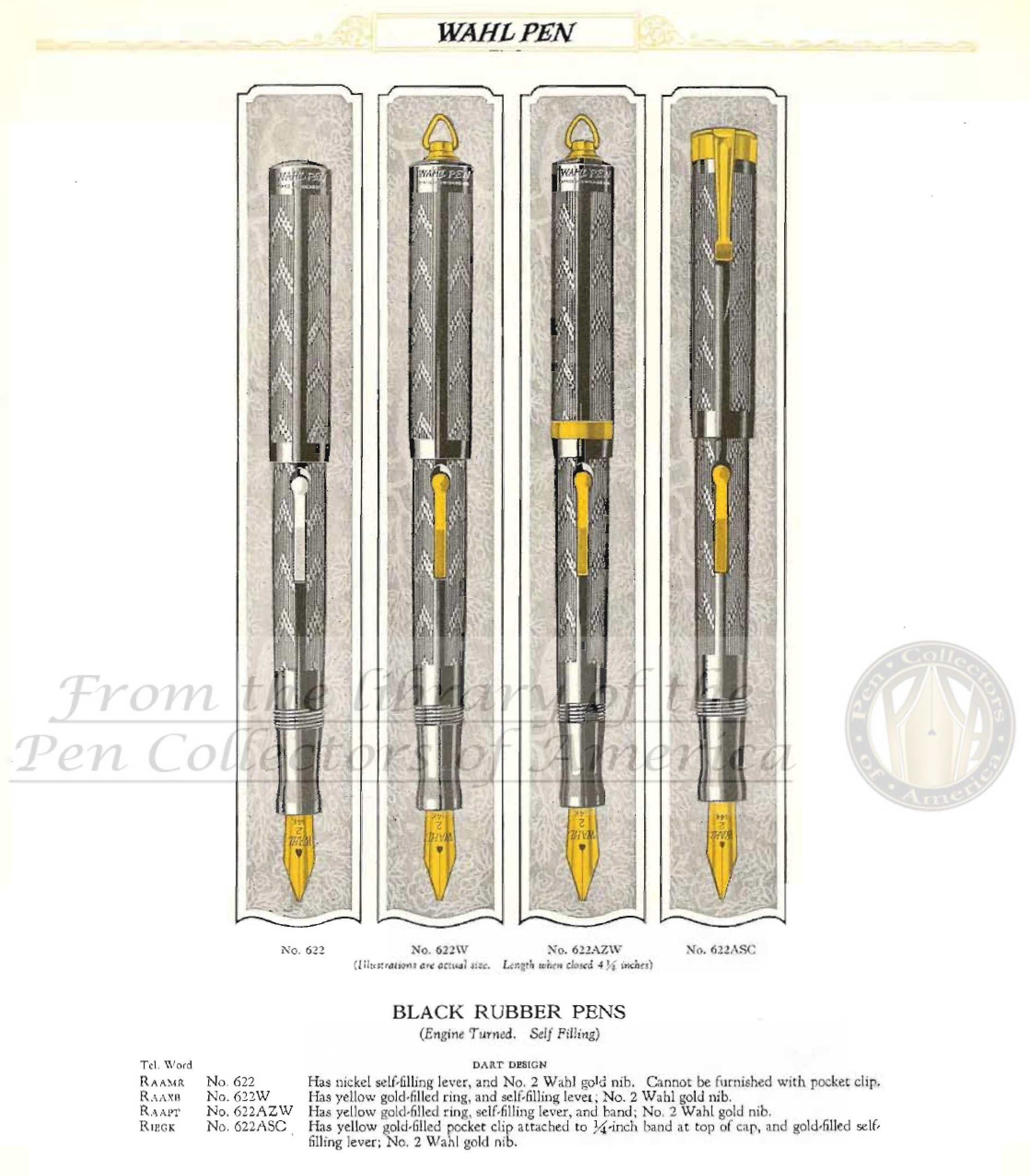 Per comodità di classificazione (e soprattutto in mancanza di un criterio più stringente di quello, improponibile, della mera enumerazione di centinaia di codici-prodotto, comprese le varianti per i telegrammi!, a cui costringerebbe la politica commerciale di quel periodo della Wahl Company), si definisce sommariamente il modello della penna in presentazione come “