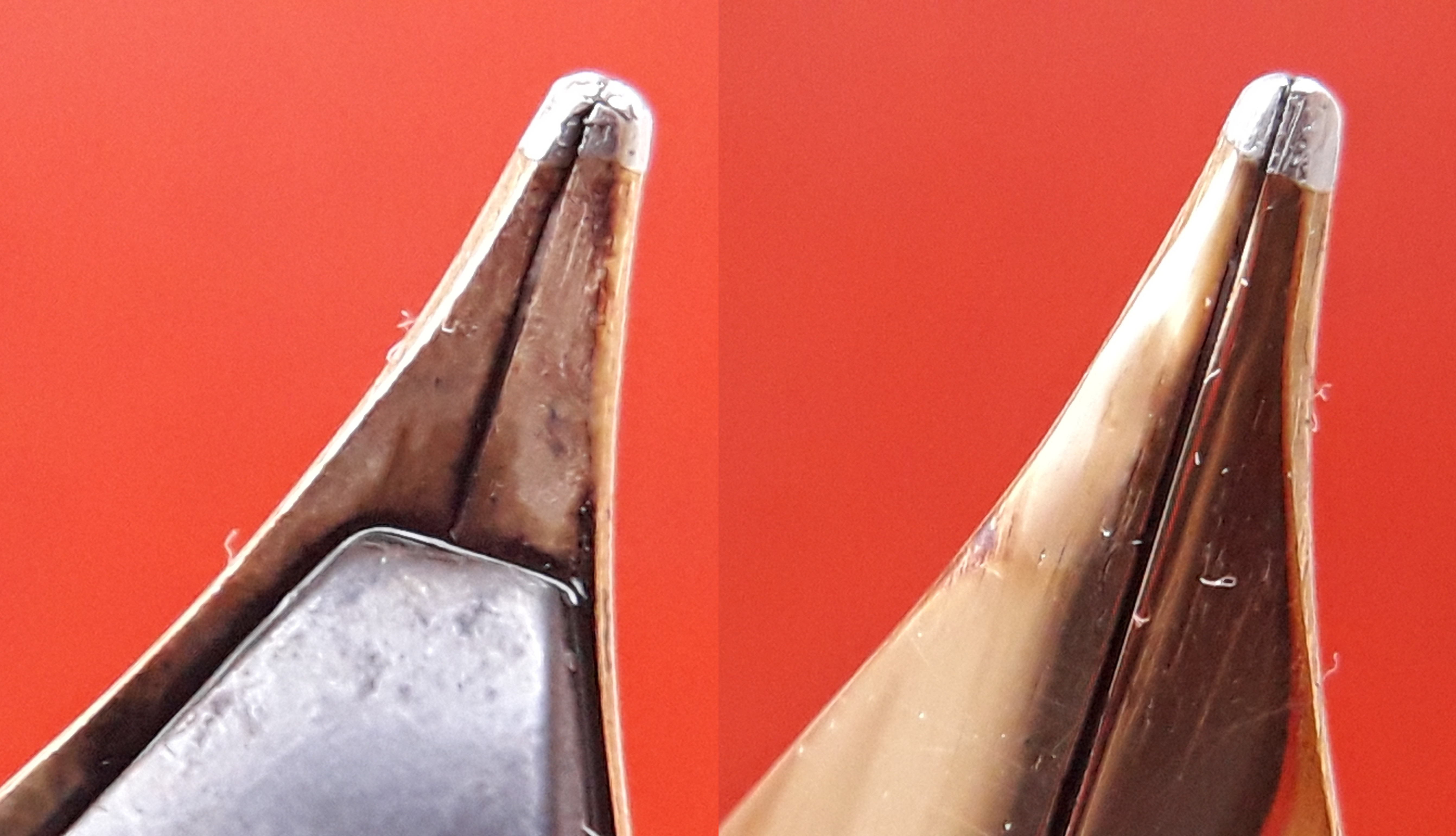 poiché, come vedete, si tratta in buona sostanza della medesima penna (!), per l’analisi delle forme, delle decorazioni comuni e del sistema di caricamento rimando direttamente a quest’ultima: