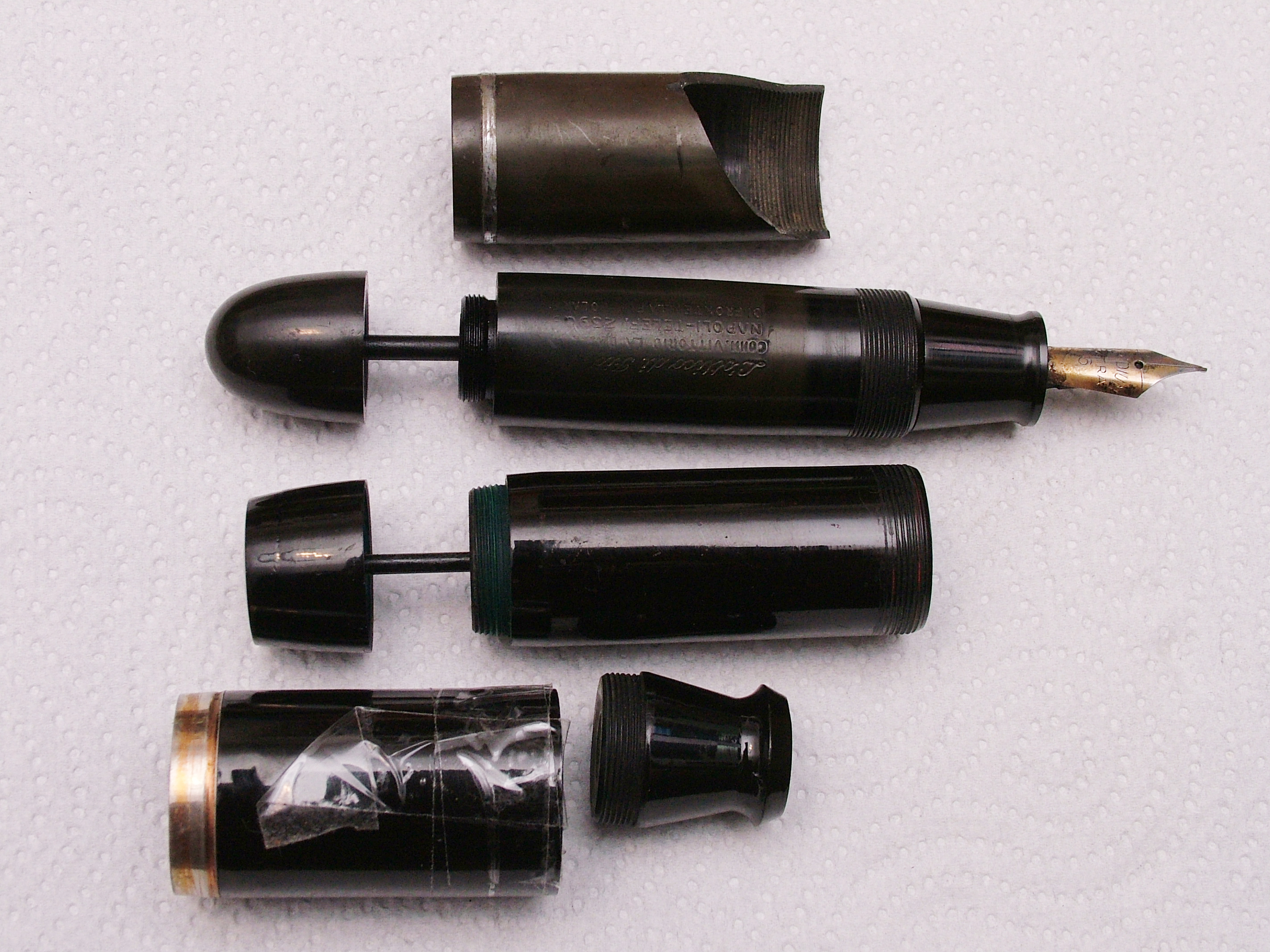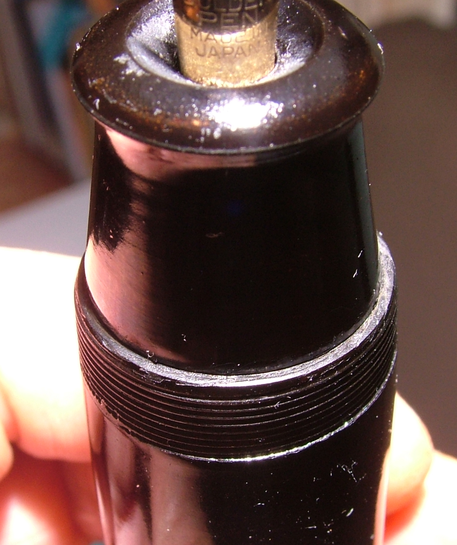 Queste penne sono spesso pensate per essere riempite col contagocce solo perché non c'è il sigillo del pistone. Certo, possono essere caricate a contagocce, ma non è necessario. Ho discusso questo tipo di penna in Pen Repair Seconda edizione pagina 208.