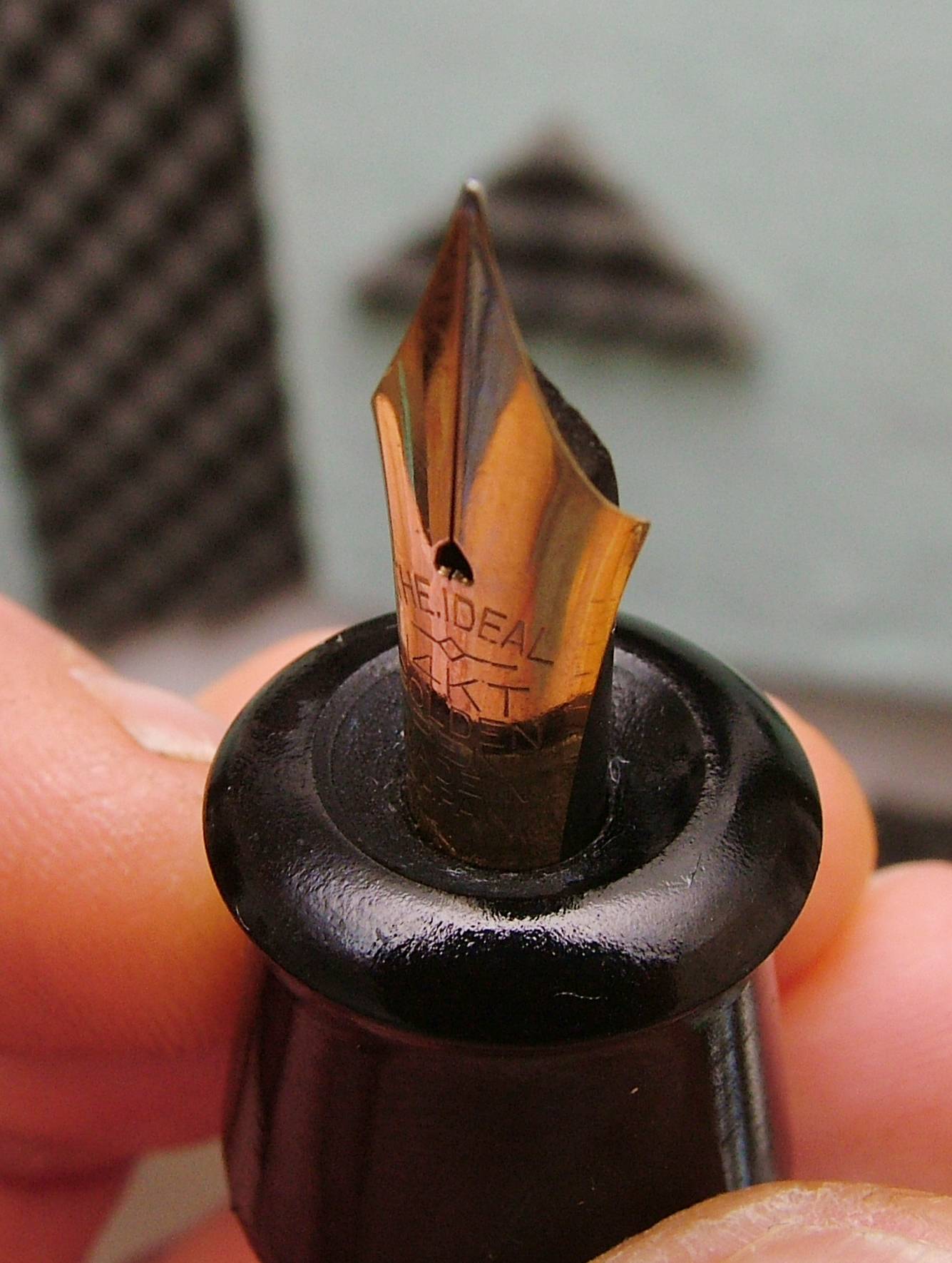 Quest'ultima ipotesi è la più probabile poichè la penna è in ebanite laccata, questa veniva effettuata dopo il montaggio, la sezione risulta sigillata al fusto, per levarla ho dovuto levare alla attaccatura della sezione la lacca con il cutter, facendo attenzione anon graffiare il fusto o/e la sezione, ho sudato freddo.