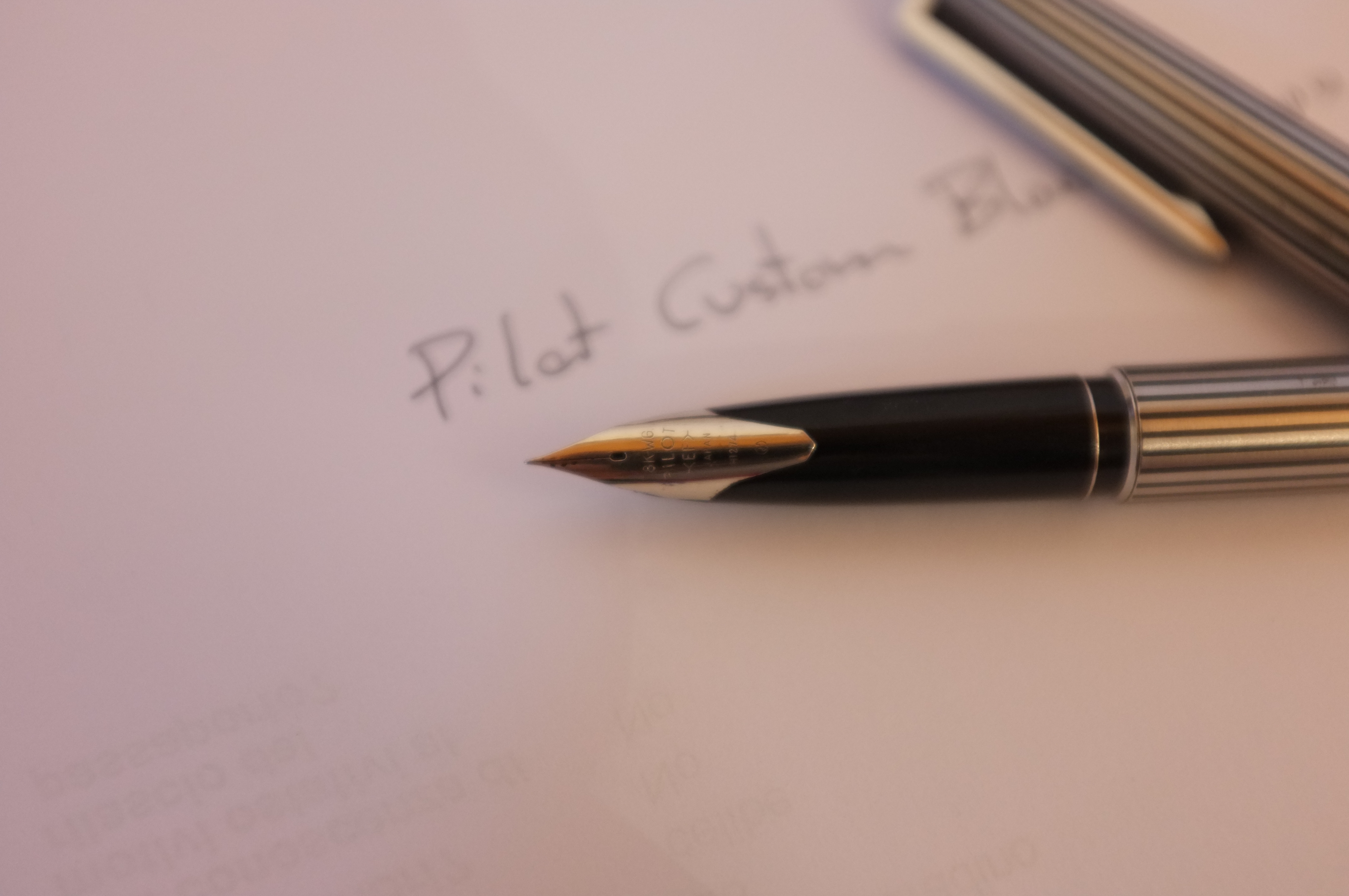 Dopo un lavaggio accurato il pennino scrive con un tratto molto sottile ma per niente stitico. Il pennino, forse anche per la misura molto ridotta, ha del feedback evidente nonostante i rebbi allineati, soprattutto su carta non di qualità. La scrittura è molto precisa, come atteso per un extra fine giapponese. Nel complesso la penna mi piace molto.