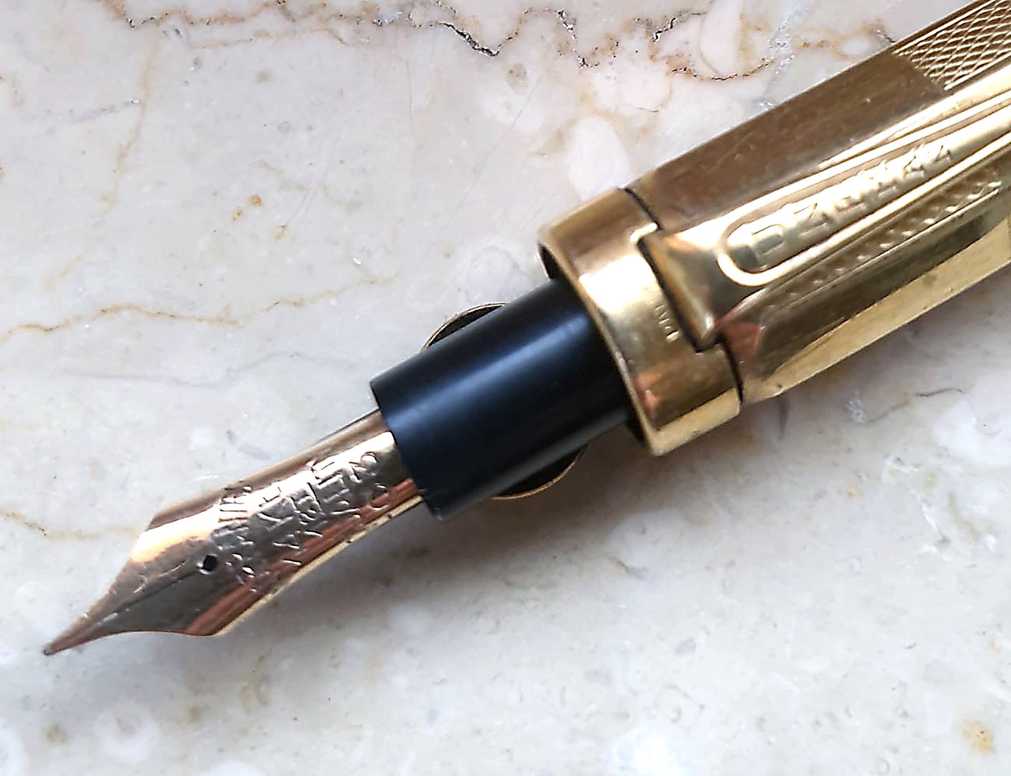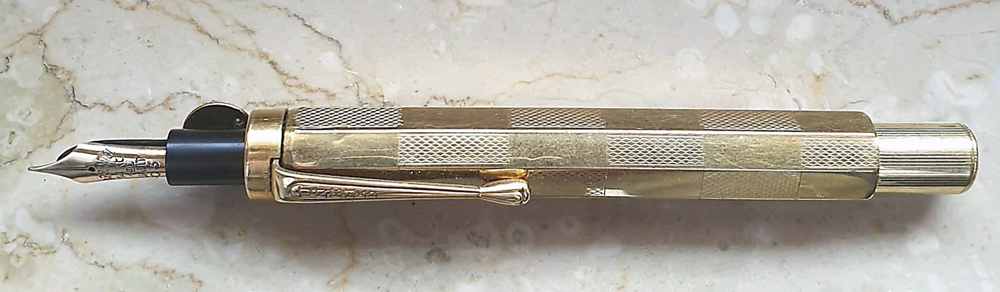 Stilografica Uneman, brev. Leopold Kutter, Vienna 1928-1934. Praticamente identica, nel funzionamento, alla Pullman. Laminata oro e caricamento a bottone di fondo. Commercializzata con questo nome in Italia (non conosco il nome del fabbricante, forse la tedesca "Bossert & Erhard"... Graditissimi pareri in proposito da chi ne sapesse qualcosa).