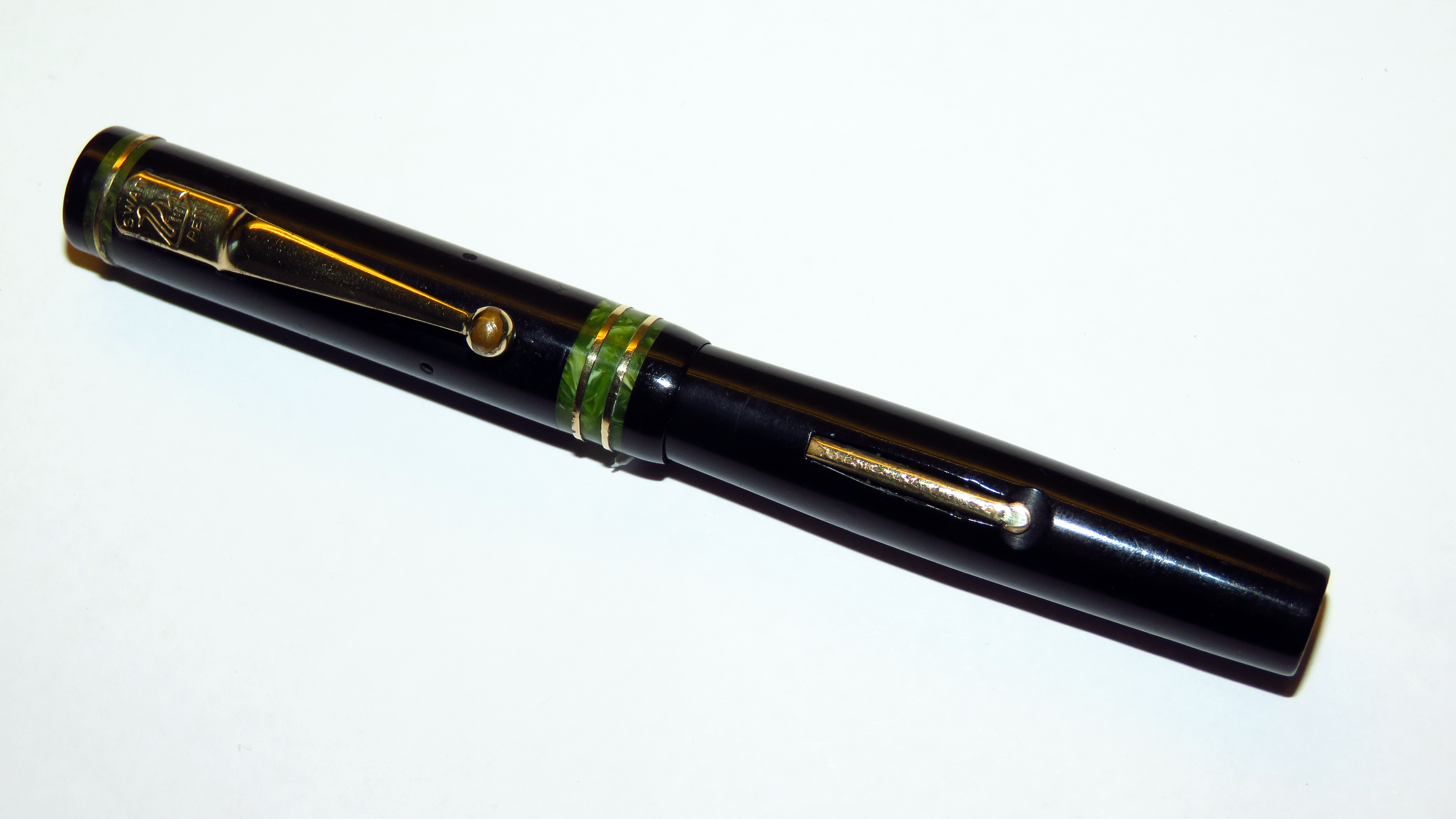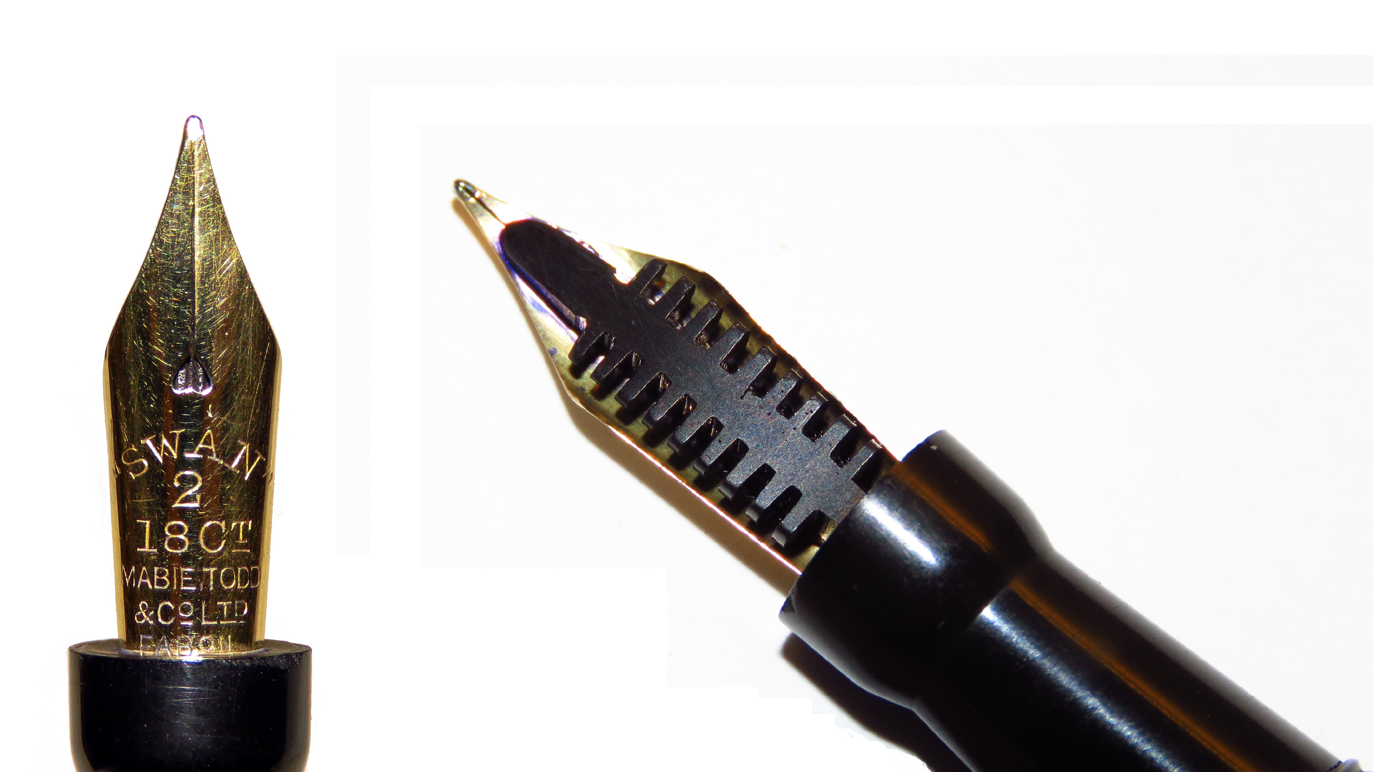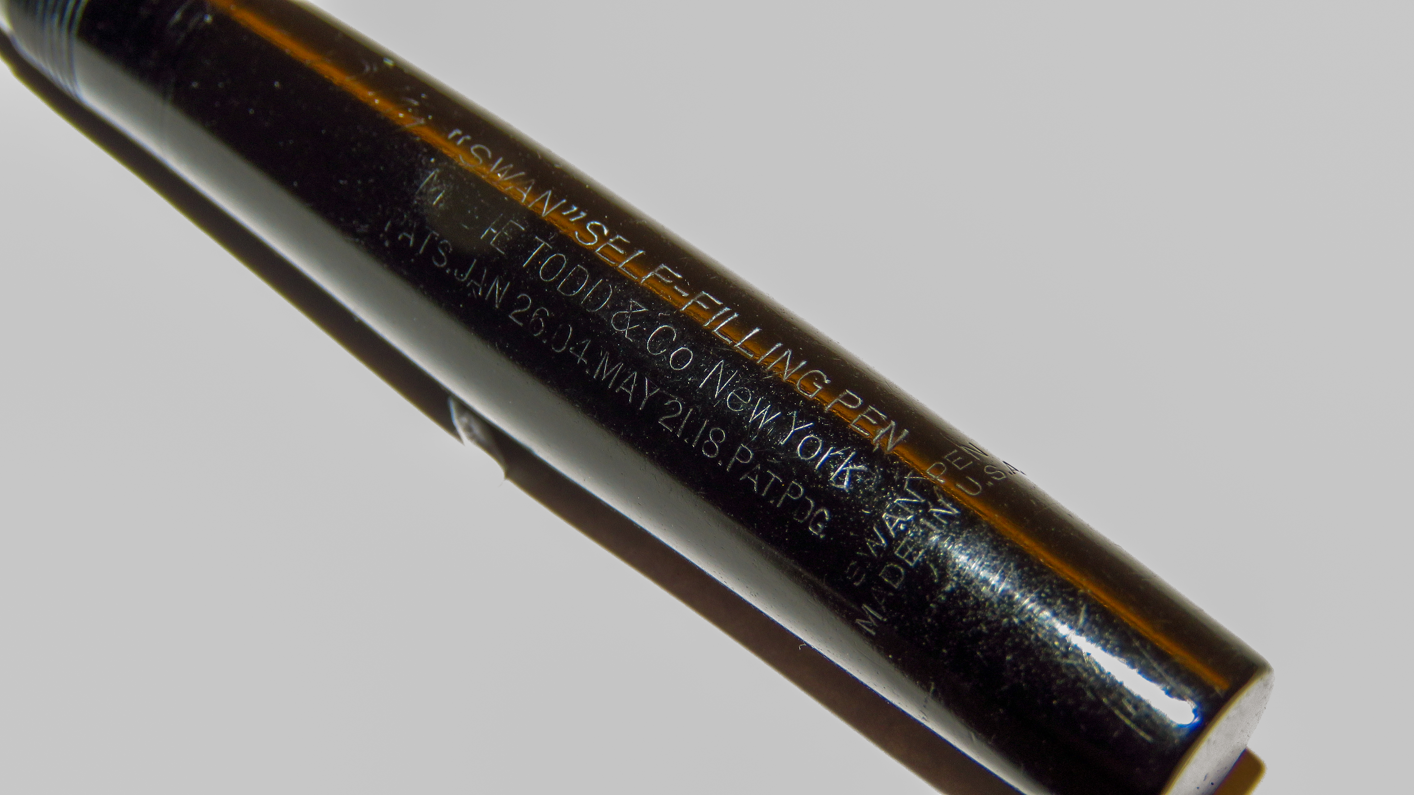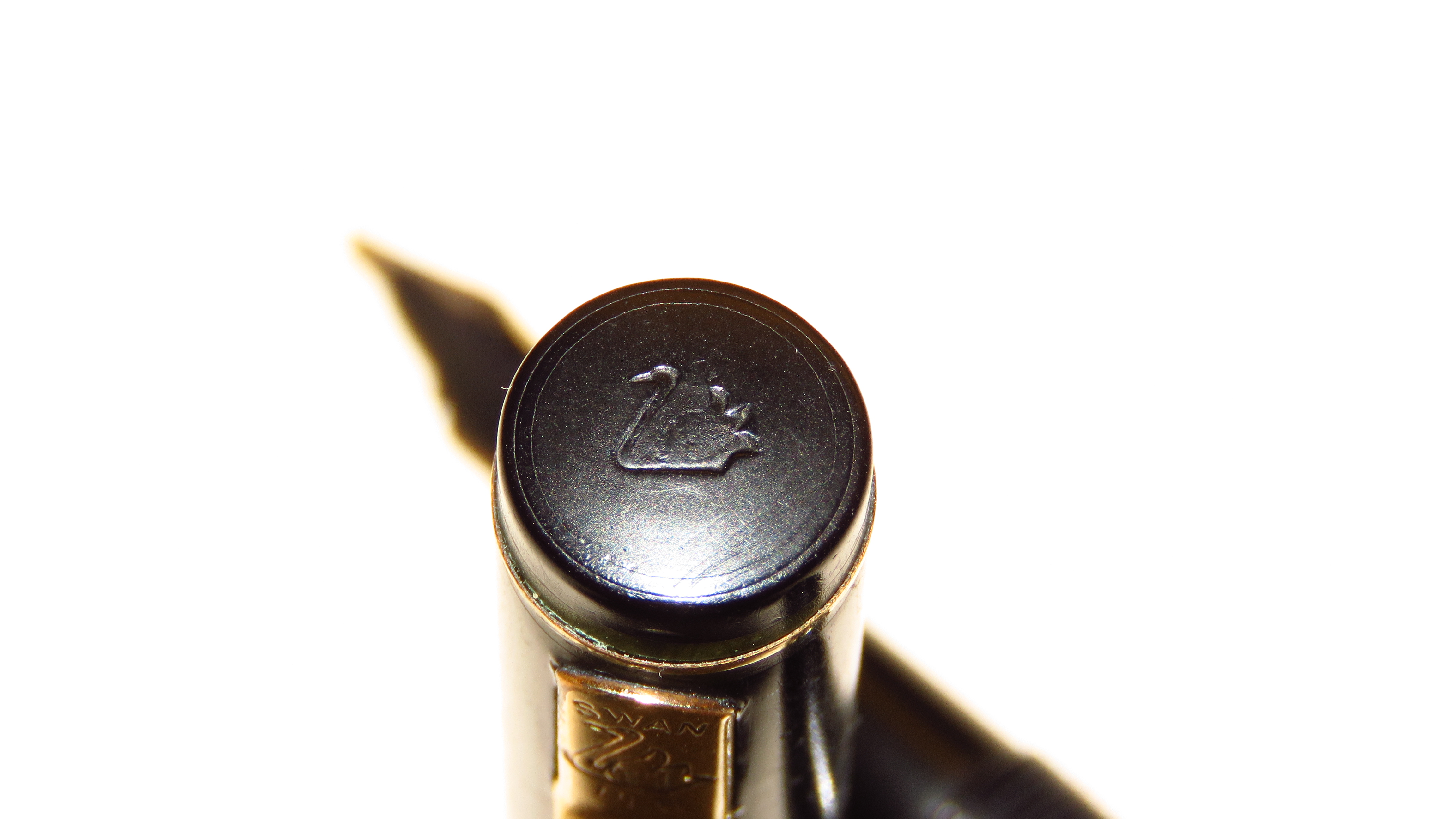 Molto simpatico ed estremo il "ladder feed" americano con le piccole alette che sembra vogliano spezzarsi da un momento all'altro. Putroppo in foto si notano i micrograffi che per scelta non elimino, ma per far risaltare le incisioni bisogna usare una luce radente. Una novità/particolarità di cui non ero per nulla a conoscenza è che fossero disponibili anche in versione corta, probabilmente per signore. Da qui la mia aggiunta nel codice del modello della B, che indica nelle "Swan" le penne corte "lady".