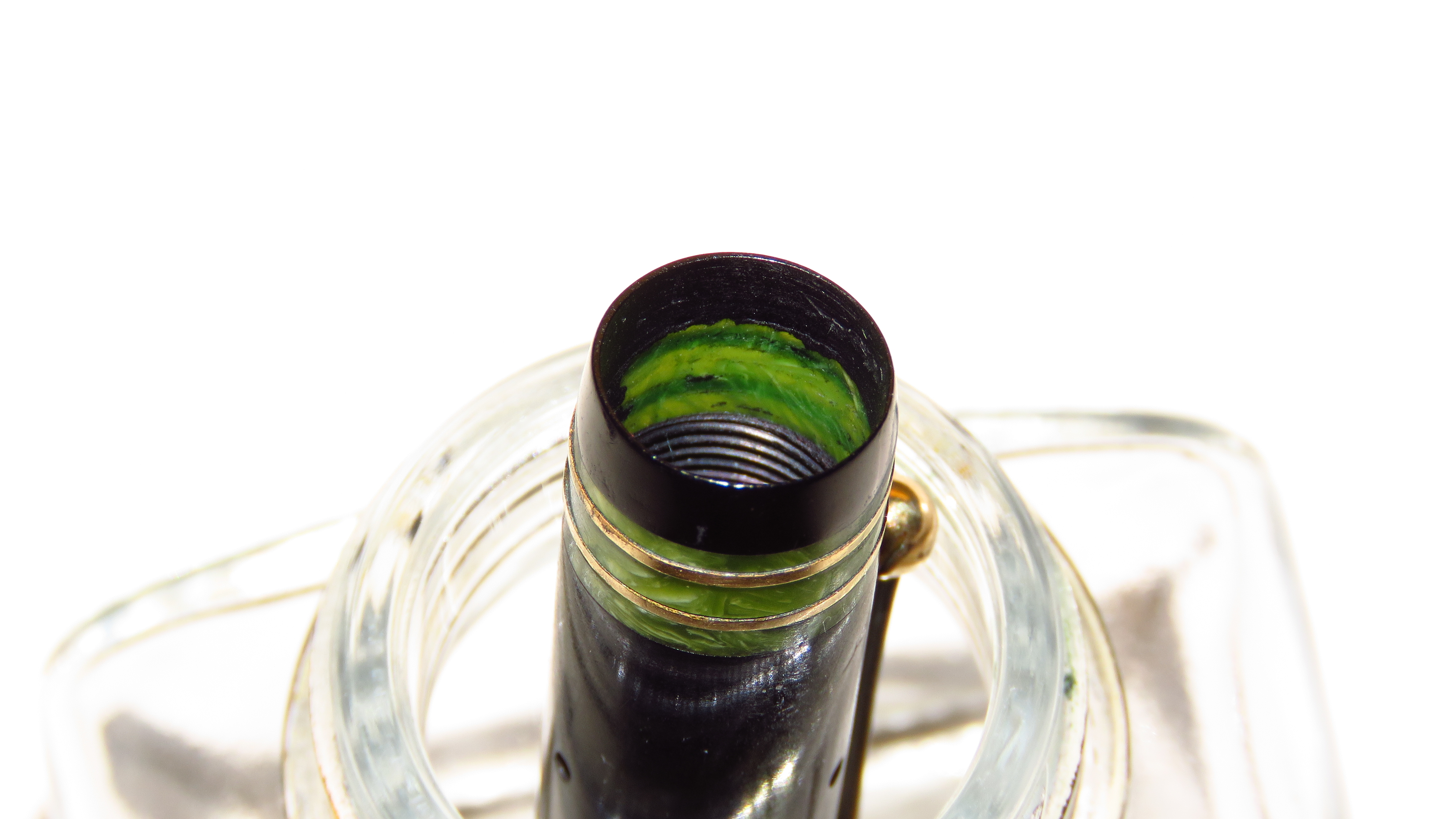 Grazie! Non capisco se è inchiostro secco o qualcos'altro tipo collante che oscura la banda verde giada, specialmente quella in cima. Non sono riuscito a rimuoverlo.