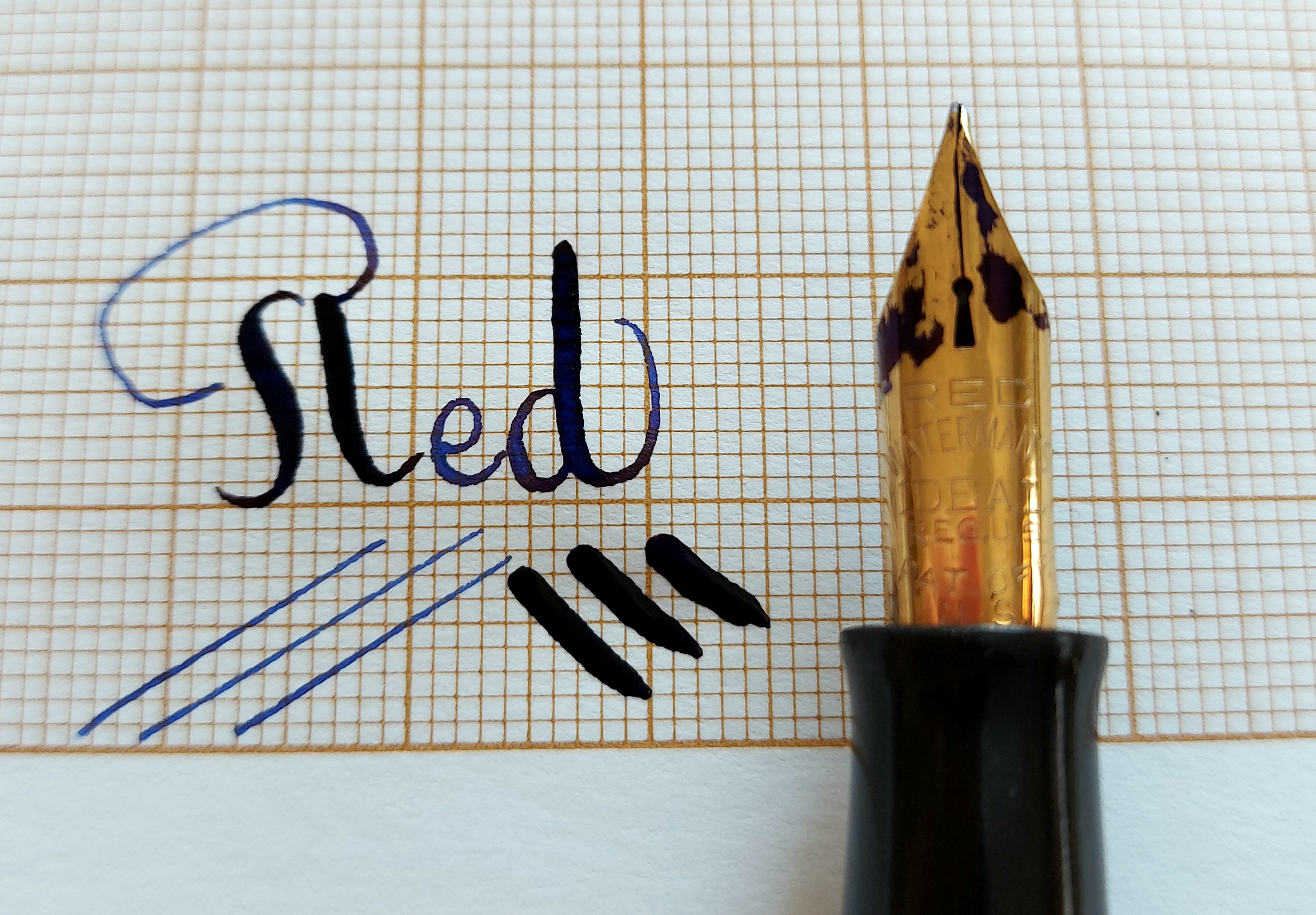I pennini flessibili fanno venire in mente il copperplate o il corsivo Spencer ma per gli effetti migliori credo sia davvero necessario il pennino a intinzione/intingimento, specialmente col canotto sghembo per dare la giusta inclinazione al pennino rispetto alla carta.