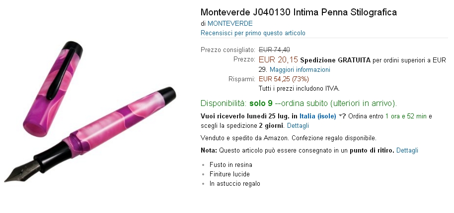 Una Monteverde in resina a € 20,15 mi sembra sottocosto. Però è rosa