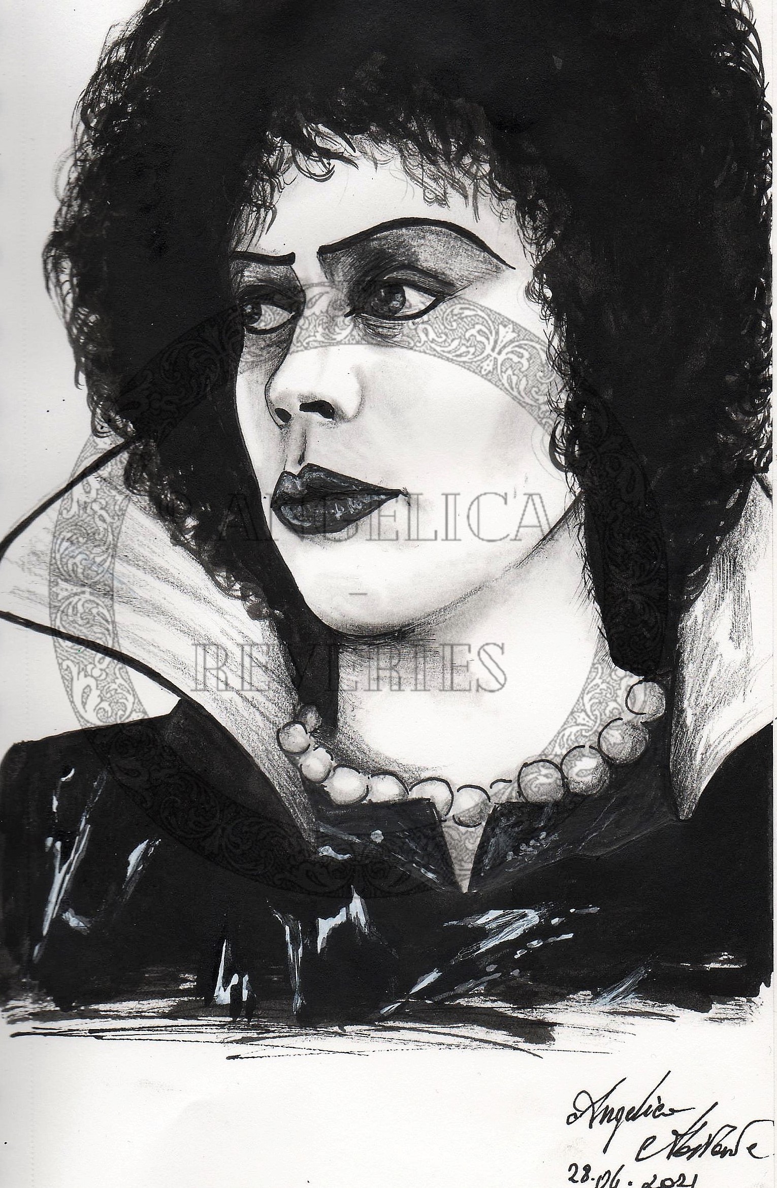 Finalmente, dopo una lunga pausa dovuta ad impegni universitari, posso tornare a mostrarvi i miei lavori. Il primo è un ritratto a grafite ed inchiostro (ormai il fidatissimo Rohrer&Klingner Sketchink Lotte, che mi accompagna dovunque nella leggerissima Prefounte) di Tim Curry nel ruolo del Dottor Frank 'n Furter dal Rocky Horror Picture Show. Spero vi piaccia!