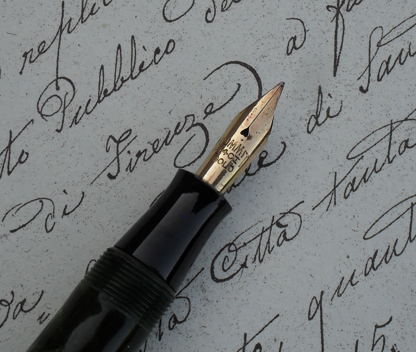 Le dimensioni del pennino, in questo caso un medio tagliato dritto marchiato Summit, sono quelle standard per il modello S.100.