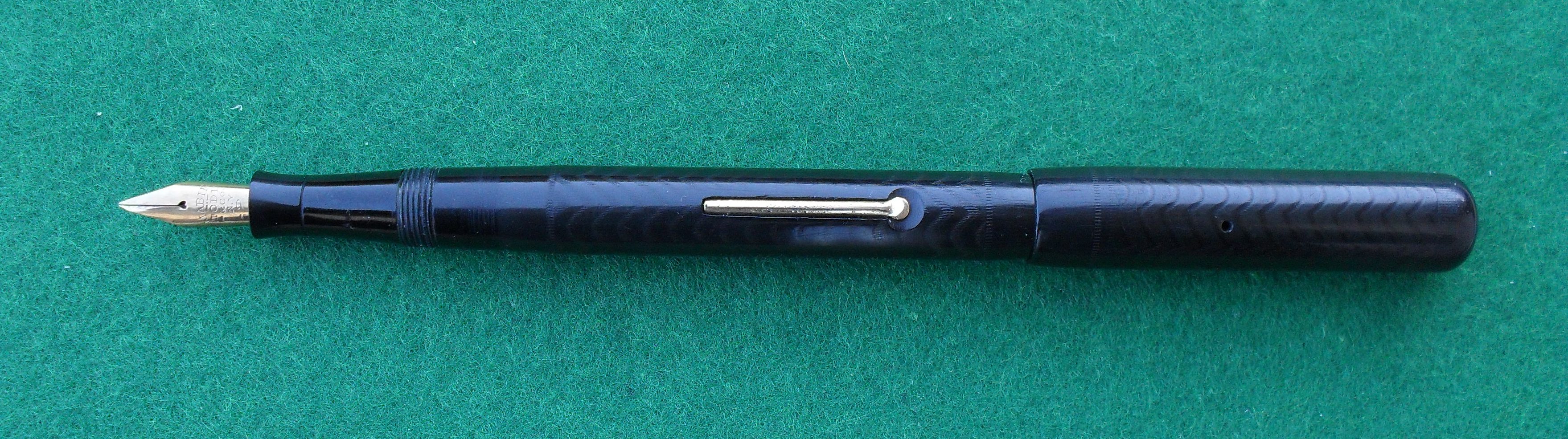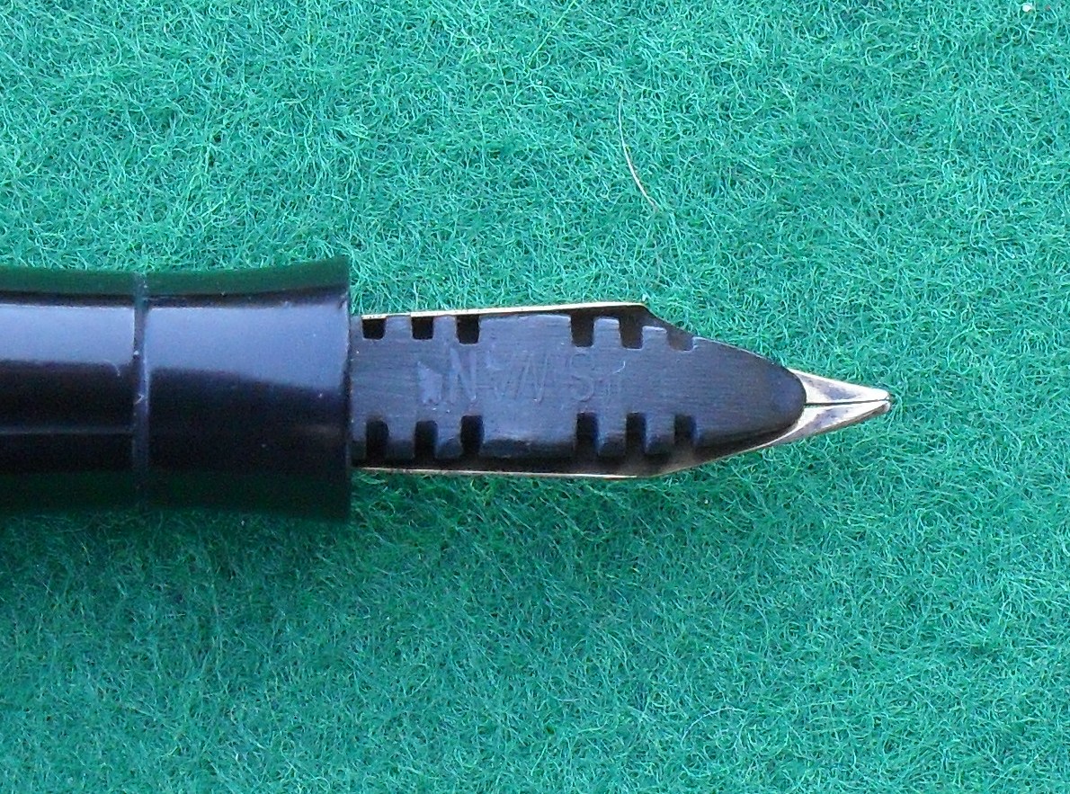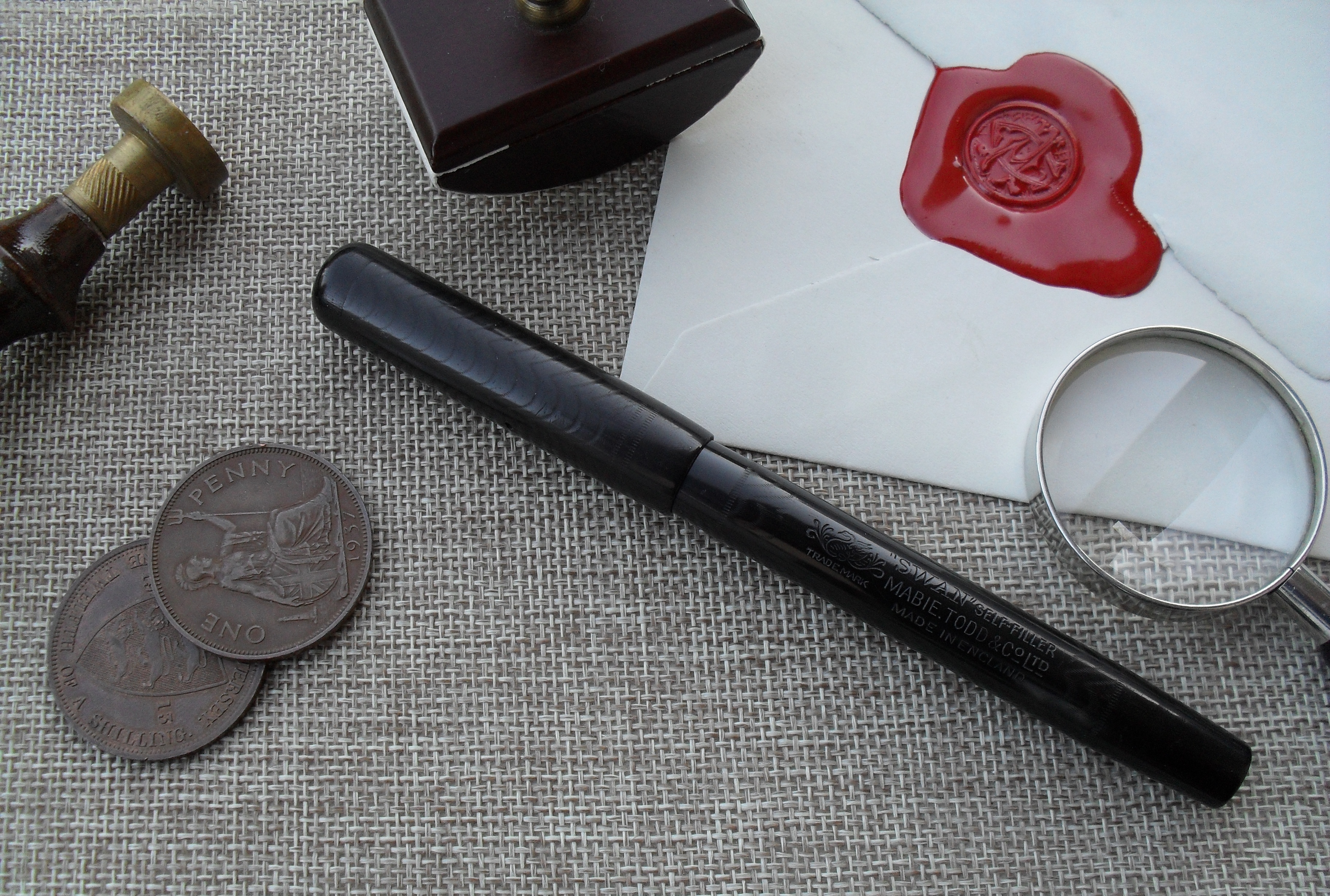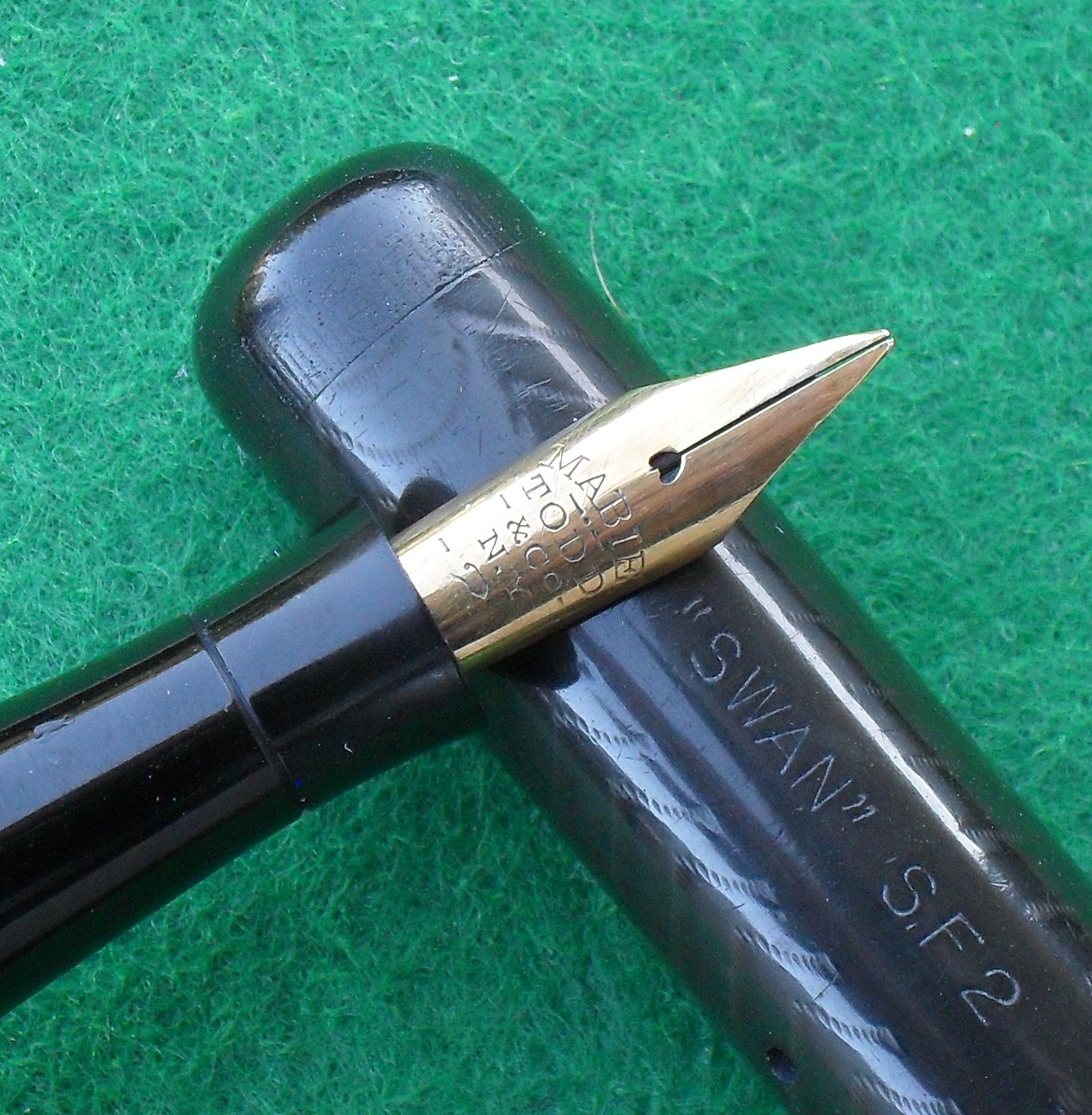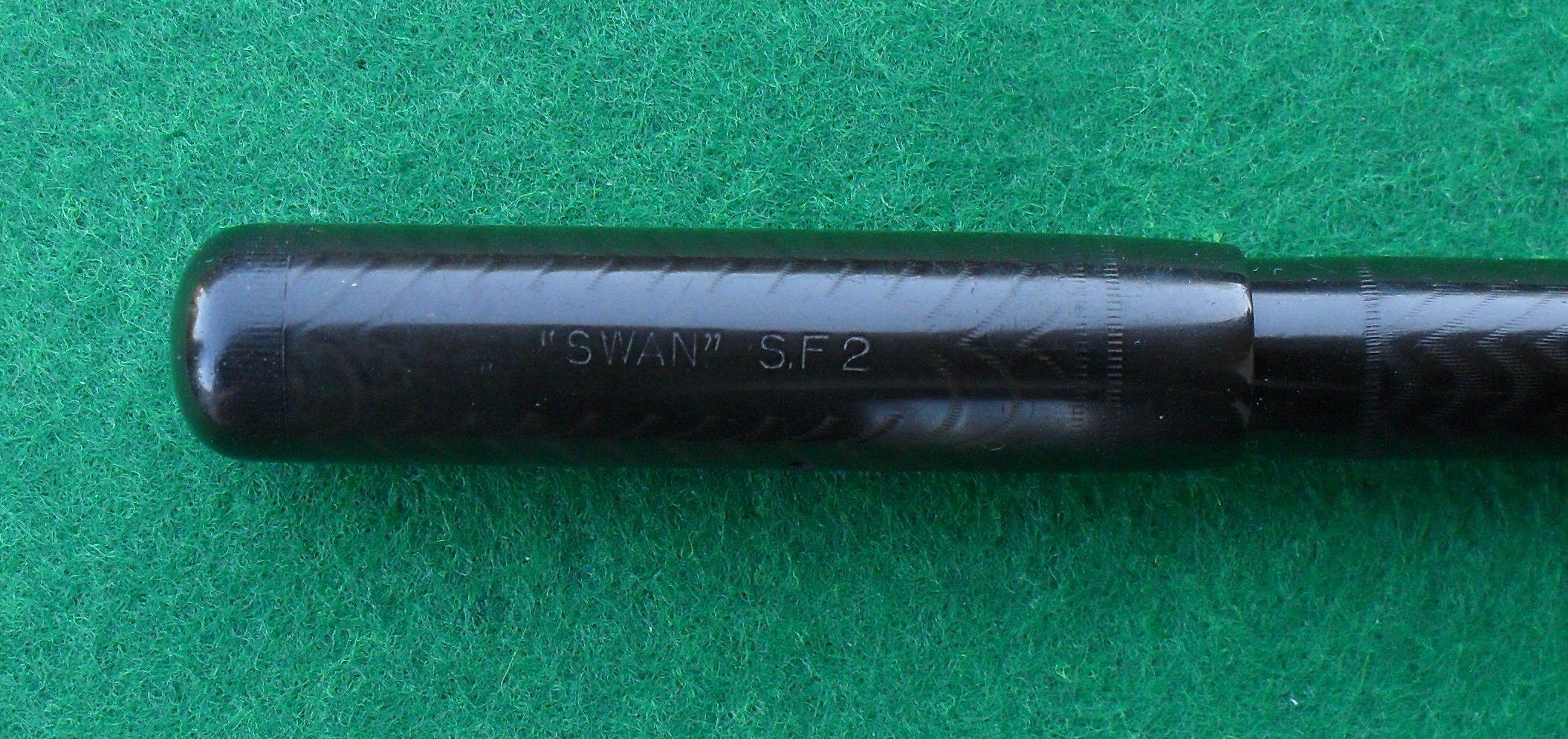 Questa Swan rappresenta bene lo standard produttivo del famoso marchio per quel periodo: cesellatura a festoni, cappuccio a vite senza clip, buona autonomia di scrittura grazie alle dimensioni del corpo, che consentiva l’alloggiamento d’un serbatoio interno in gomma piuttosto lungo, pennino di produzione ancora americana.