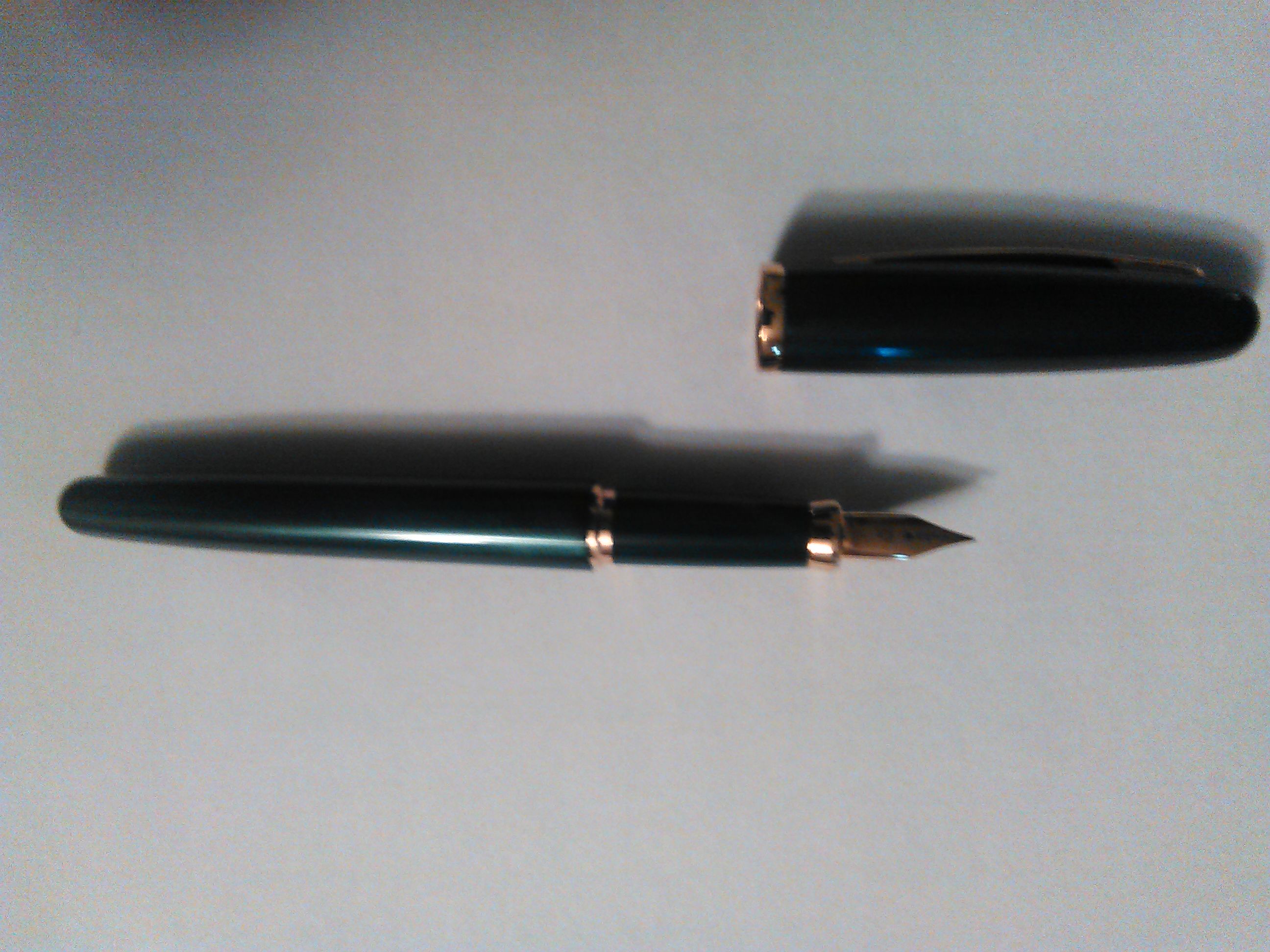 La penna si presenta molto bene, trovo molto bello il contrasto dei colori oro e verde.