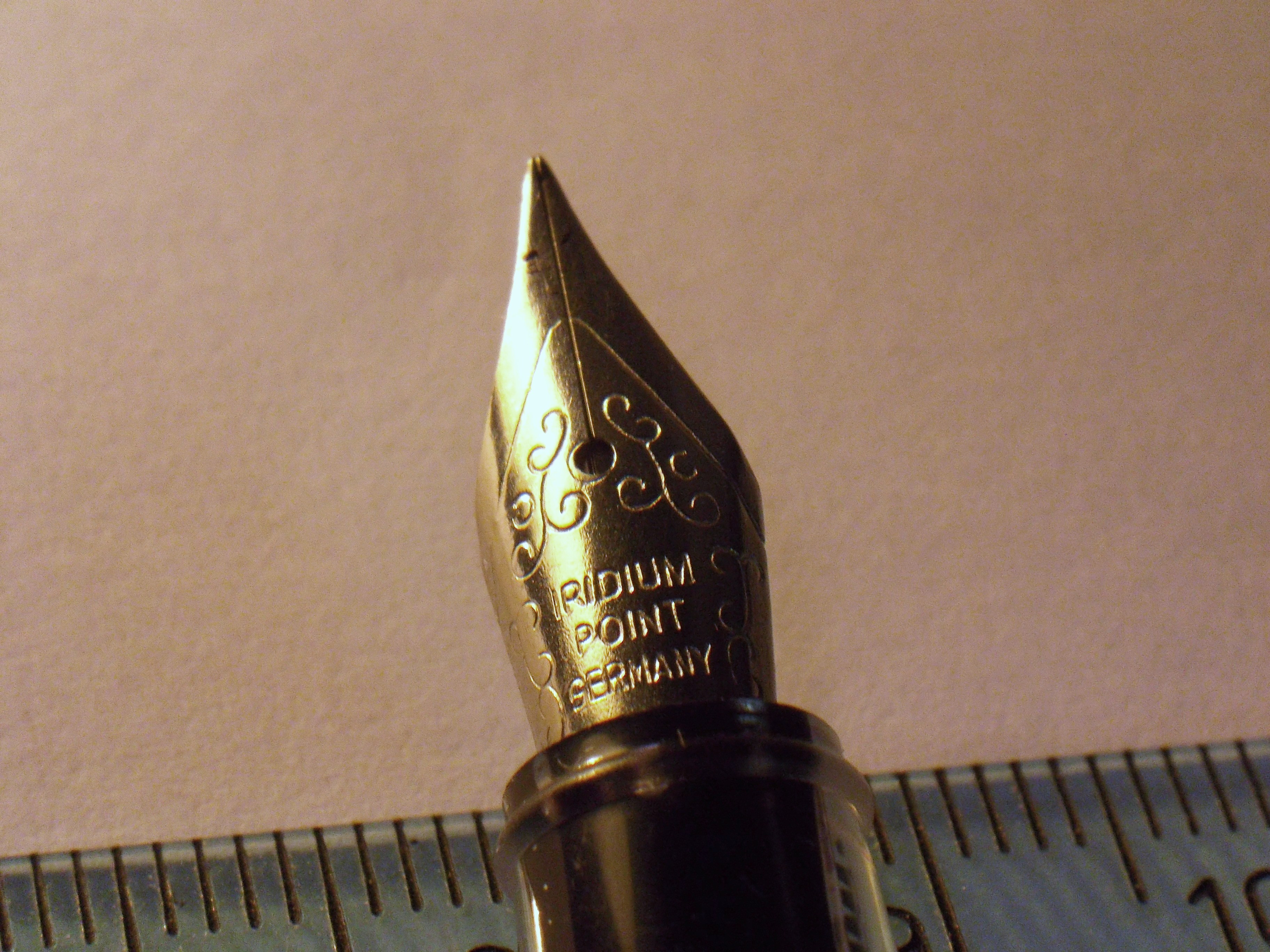 Arrivatami stamattina. Il pennino è un M, senza dubbio, e va bene così. L'ho provata senza lavarla ed era molto rigida. Dopo il lavaggio si è addolcita.