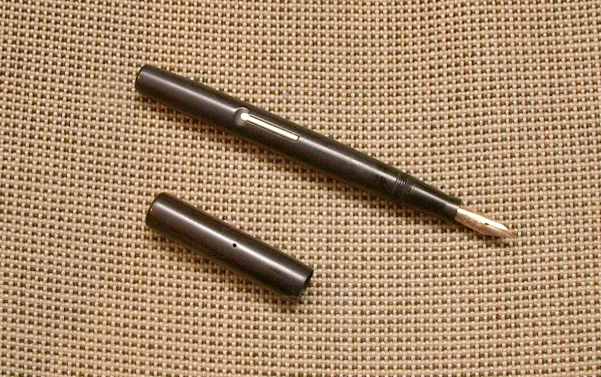 Per l'anno di costruzione dovete aiutarmi, credo sia degli anni '20 ma vado a naso, il pennino è con il foro a pentagono, ne ho viste altre su Wiki mail foro sul pennino su una è a cuore, sull'altra di forma circolare.