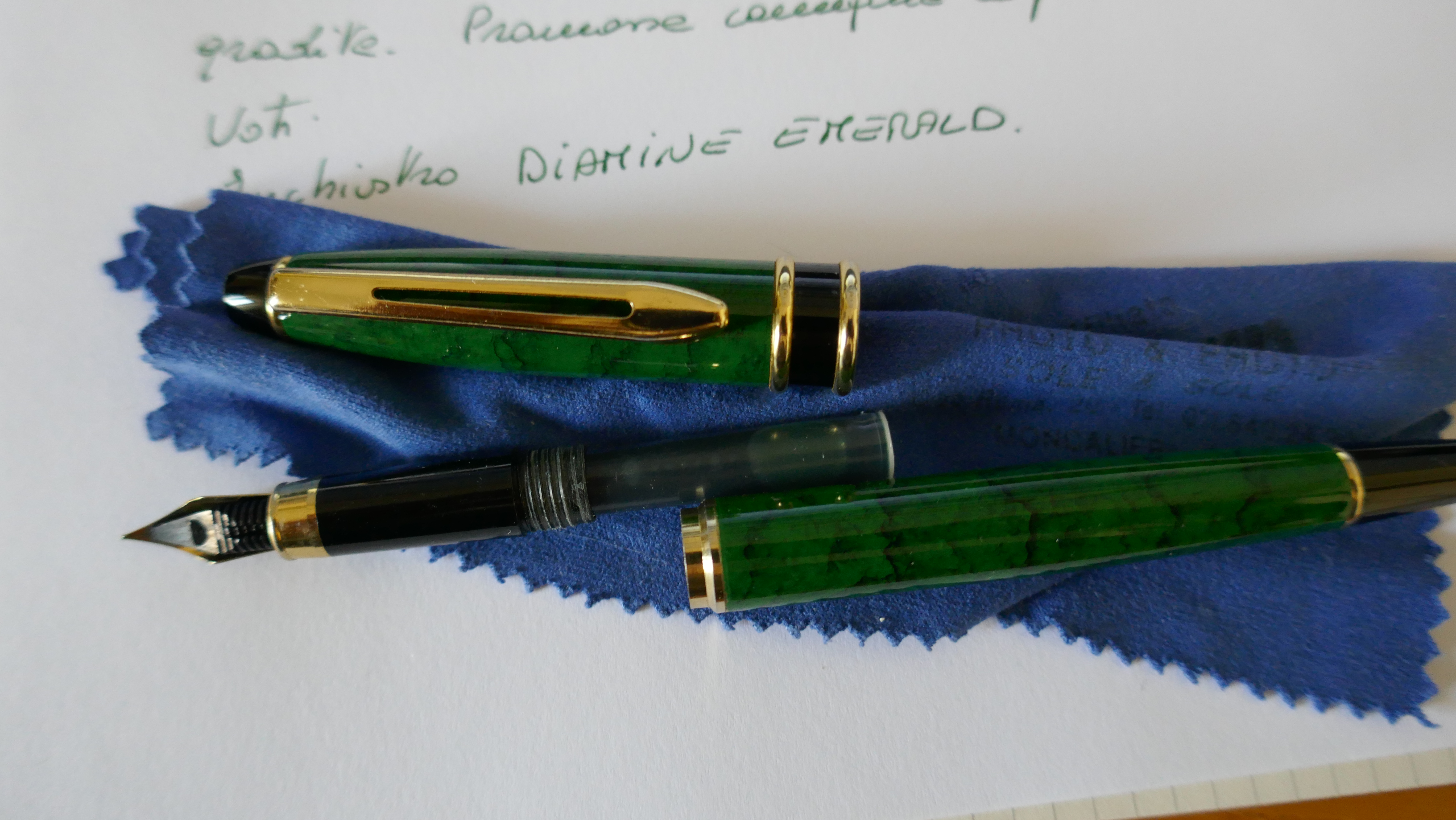 Una penna molto simpatica che ricorda un po' le Waterman anni 90, per la clip, il fusto laccato marnorizzato e le forme. Somiglia molto ad una Expert per le verette sul cappuccio.