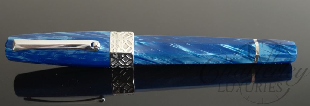 Per la prima volta, fece la sua comparsa nella seria “Symphony”, con la classica (per Montegrappa) sezione ottagonale, le finiture in argento e il finale della penna filettato per poter calzare il cappuccio con sicurezza. Ho insufficienti informazioni sul periodo di produzione della Symphony, ma la serie fu certamente dismessa intorno al 2005, quando la straordinaria “Emblema” assunse il ruolo di portabandiera in casa Montegrappa del modello ottagonale in celluloide. La Emblema, ciononostante, non fu prodotta nel colore turchese.
