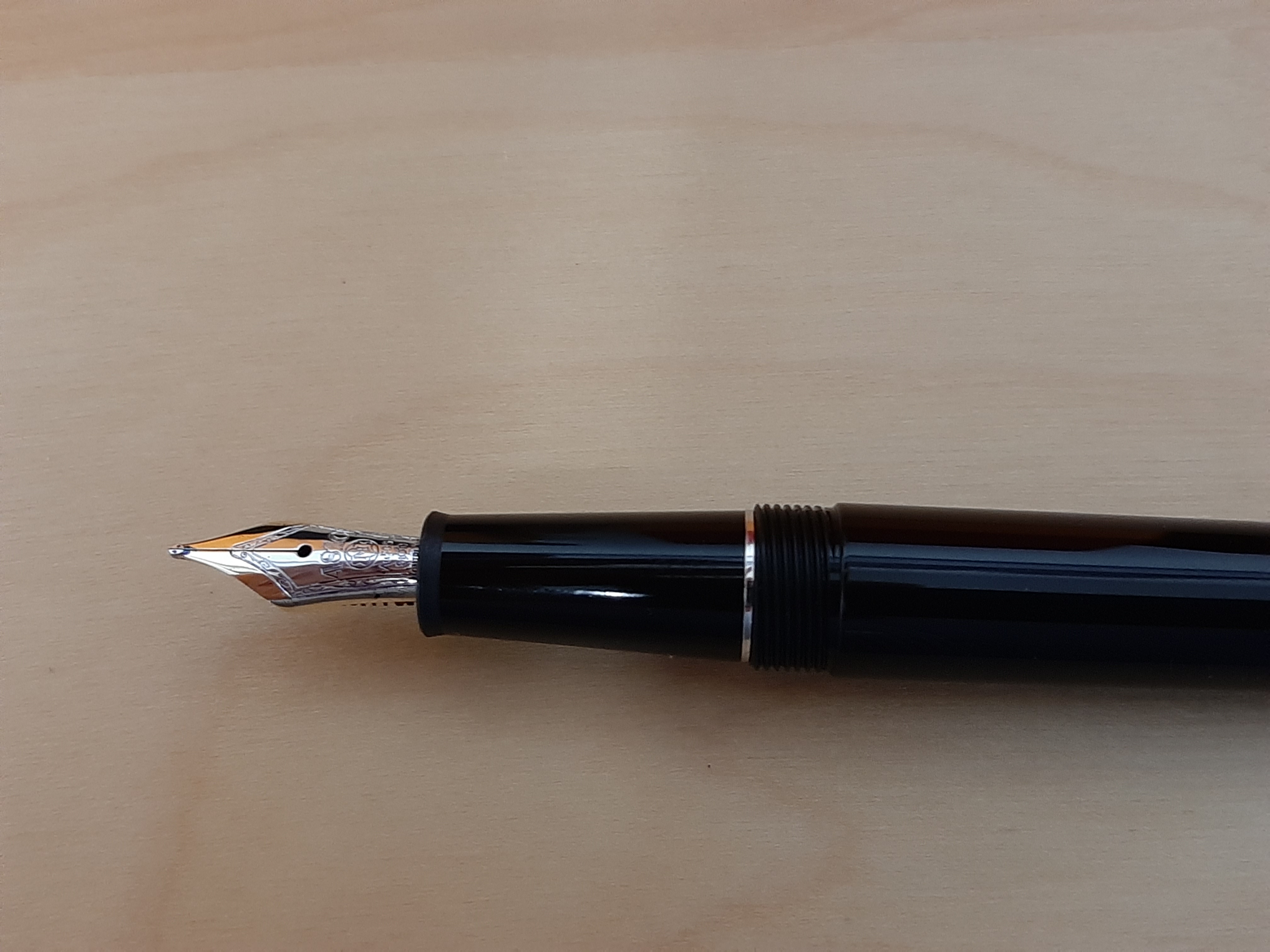 - Il pennino , oro 14 kt bicolore, è un F. Un F in stile Pelikan, quindi piuttosto ampio e molto più vicino a un M.