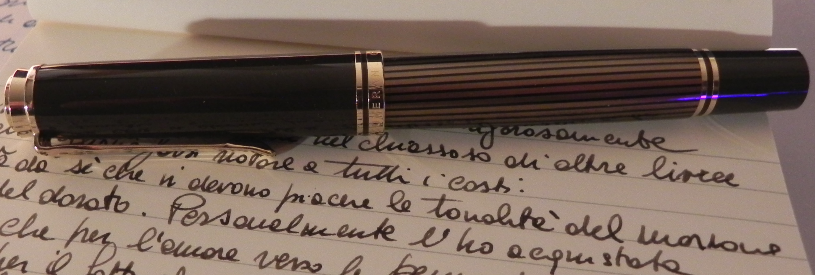 Esteticamente parlando la trovo bellissima: elegante ma non scontata e mi sembra la scelta ottimale se si vuole qualcosa di classico ma un po' meno rigoroso delle penne in abito nero. Va da sé che vi devono piacere le tonalità del marrone e del dorato, altrimenti diventa la solita e banale M800 con i colori cambiati. Beh qui siamo nell'ambito dei gusti personali e ciascuno ha i propri. Credo però sia innegabile che, dal punto di vista della scrittura e dell'affidabilità, siamo di fronte a una signora penna.