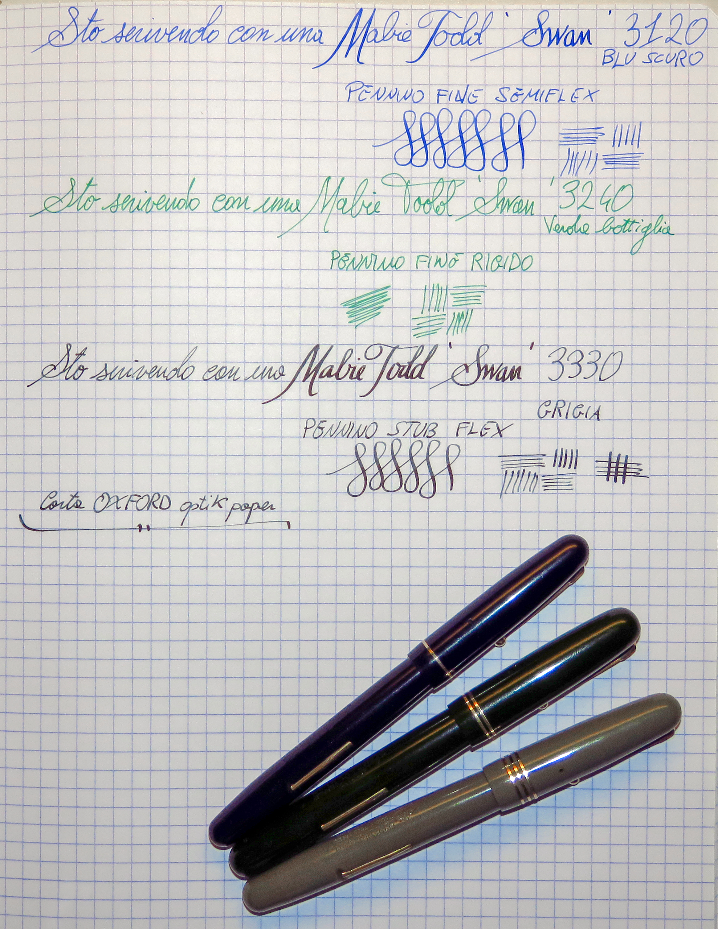 PS: questo piccolo pezzo della mia piccola collezione è concluso. Spero che la stilografite si fermi qui, ho deliberatamente scelto di non impelagarmi nei modelli colorati per non impazzire e di evitare le penne nere di cui sono già troppo pieno, ma non si può mai sapere...