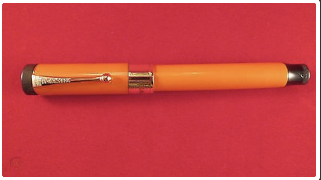La Duofold arancione in gomma vulcanizzata (che fu conosciuta con il nomignolo di Big Red) fu, nel 1921, una straordinaria innovazione di Parker, e la penna che garantí il successo della marca su scala mondiale. Confesso di non essere particolarmente attratto dal “vintage” stilografico. Mentre ne riconosco il valore storico e, spesso, la qualità scrittoria, mi affascinano meno i segni che il tempo ha inevitabilmente lasciato su questi oggetti di uso quotidiano e che, ai miei occhi, li rendono vecchi. Peró una Duofold arancione moderna… quella sí, mi é sempre sembrata una penna desiderabile, a parte il costo. Quando una penna cosí, al prezzo giusto, comparve finalmente sul mio radar, la feci mia ormai vari anni fa. Avrei preferito l’equivalente di una MKII, la Pen-of-Peace prodotta nel 1988 in edizione limitata per celebrare l’accordo firmato tra i presidenti George W. Bush e Boris Yeltsin per la riduzione degli armamenti nucleari, una penna che, come la MKII, ha il finale del cappuccio rastremato, il medaglione con il pendulum, due anelli di uguale spessore sul cappuccio e un solo anellino al fondello. Ma, vista la sua produzione limitata e il packaging elaborato, é una penna che, quando la si trova, costa un migliaio di dollari.