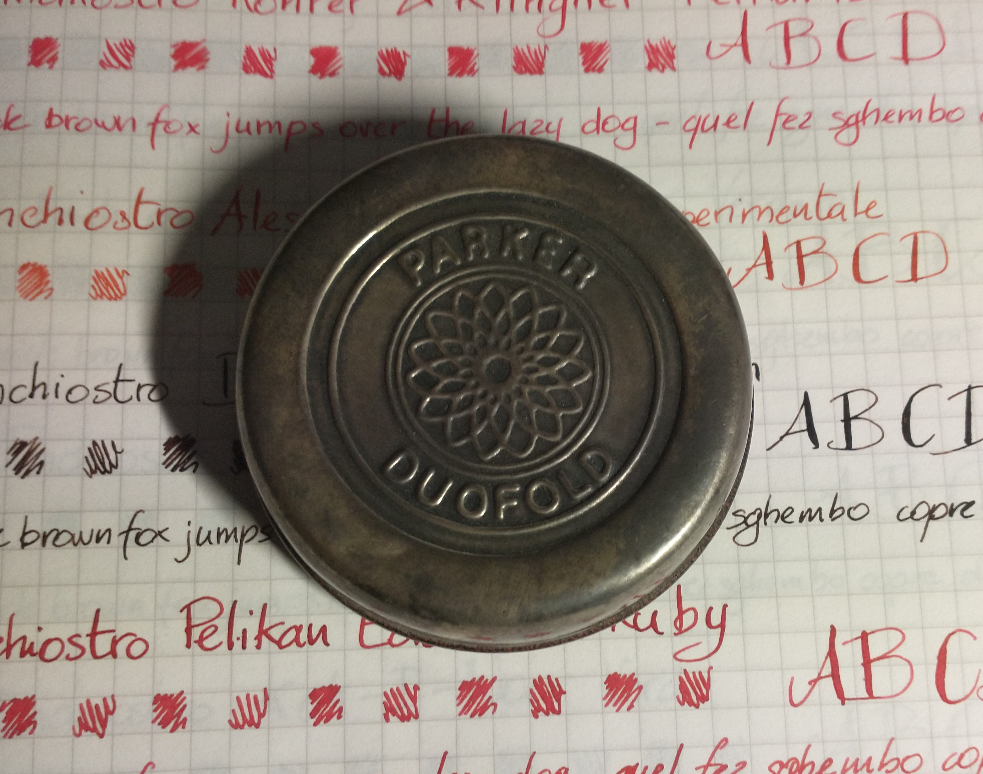 Mi fermeró lí, perché non possiedo Duofold piú moderne da mettere a confronto. Peró, giusto per la cronaca, la MKIII, introdotta nel 2006, é una penna praticamente identica alla MKII se non per il diverso medaglione sulla sommità del cappuccio e la decorazione del pennino (in entrambi i casi un asso di spade) e i colori proposti: accanto al classicissimo nero, un bel blu uniforme (ma non altrettanto bello di quello del modello MKII in blu lapislazzuli, che era sottilmente marmorizzato) e un colore ivorine, che credo si sia venduto poco. La ultima, e attuale, incarnazione della Duofold, lanciata \ nel 2015, con il grande anello metallico che copre il labbro del cappuccio, é una penna che non mi piace e non ne avrò mai una per mettere nel confronto. Di fatto, a me sembra che gía dall’introduzione della linea “Ace of spade”, Parker (ora francese) abbia un po’ perso la direzione (e l’edizione del Centenario della Duofold ne é per me una conferma): i colori non molto fedeli alla tradizione storica del modello, e quella Big Red con l’anello del cappuccio troppo grande, proposta solamente in finiture cromate…