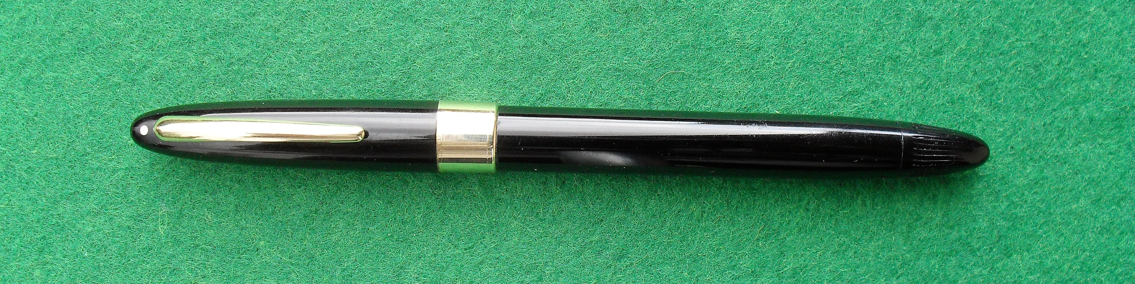 Il sistema indubbiamente funziona, anche se limita un po’ l’autonomia di scrittura, e riscuote un ottimo successo. Sheaffer’S lo propone, fino al 1963, su tutta una serie d’altri modelli; fra questi quello che vedete: la Valiant. Proposta a partire dal 1952, la Valiant sfoggia due innovazioni del produttore americano: allo Snorkel s’aggiunge il pennino conico “Triumph”, introdotto nel 1942 e grazie al quale, oltre ad un migliorato livello di robustezza, Sheaffer’S assicura anche una miglior tenuta alle fuoriuscite d’inchiostro causate dagli sbalzi di pressione (tipici, ad esempio, dei viaggi aerei) o dal riscaldamento, conseguente all’impugnatura, dell’aria contenuta nel serbatoio.