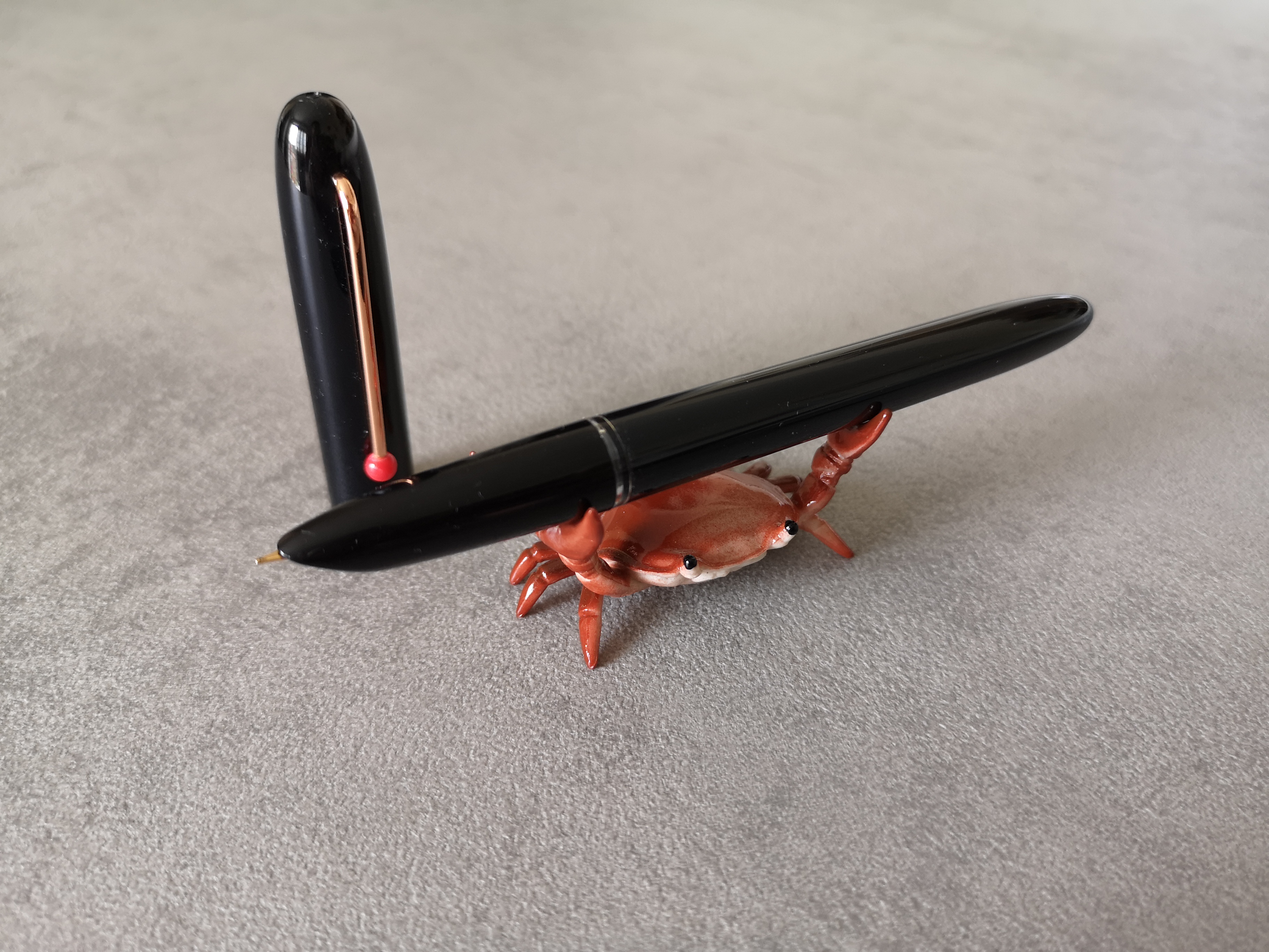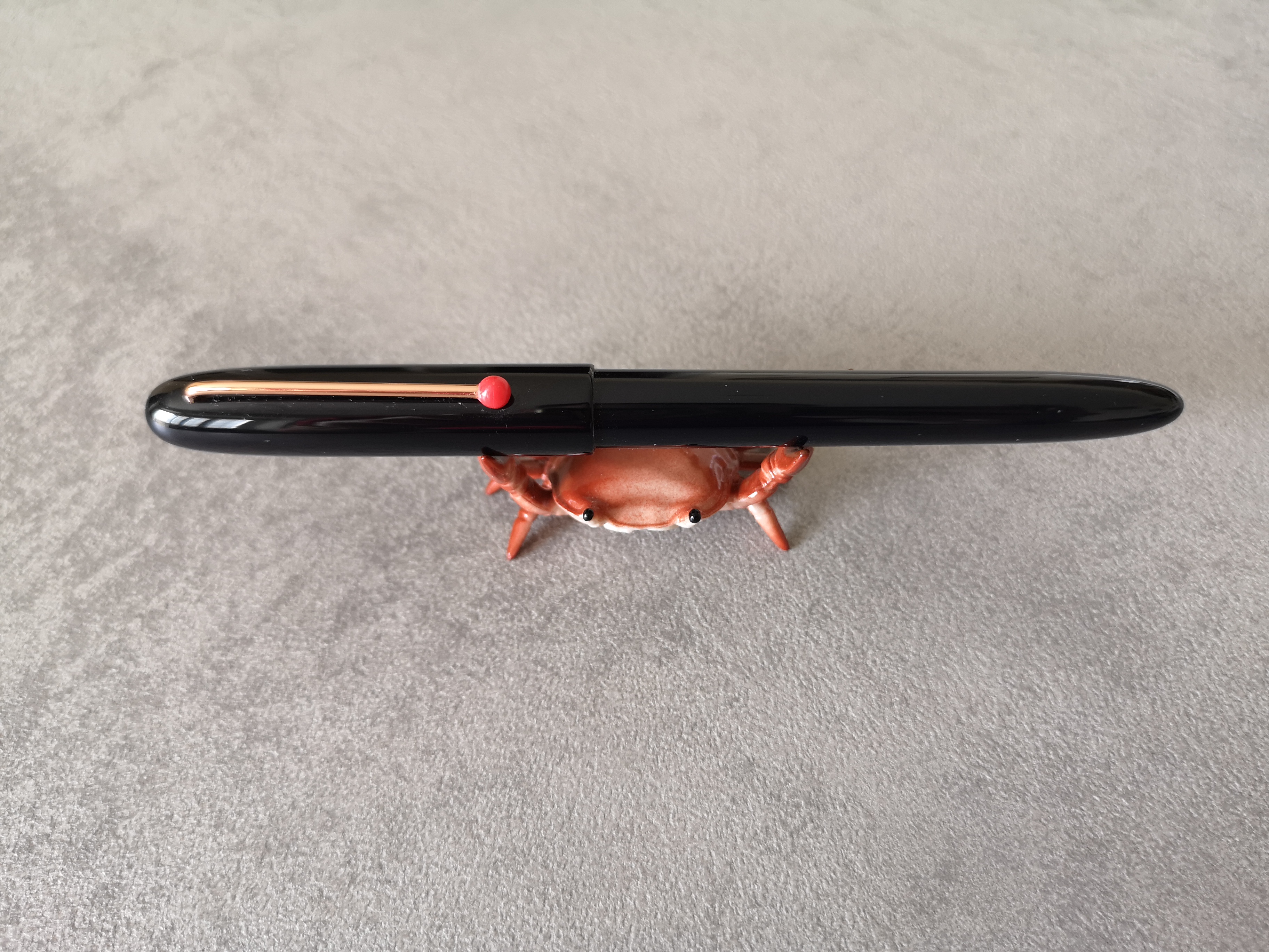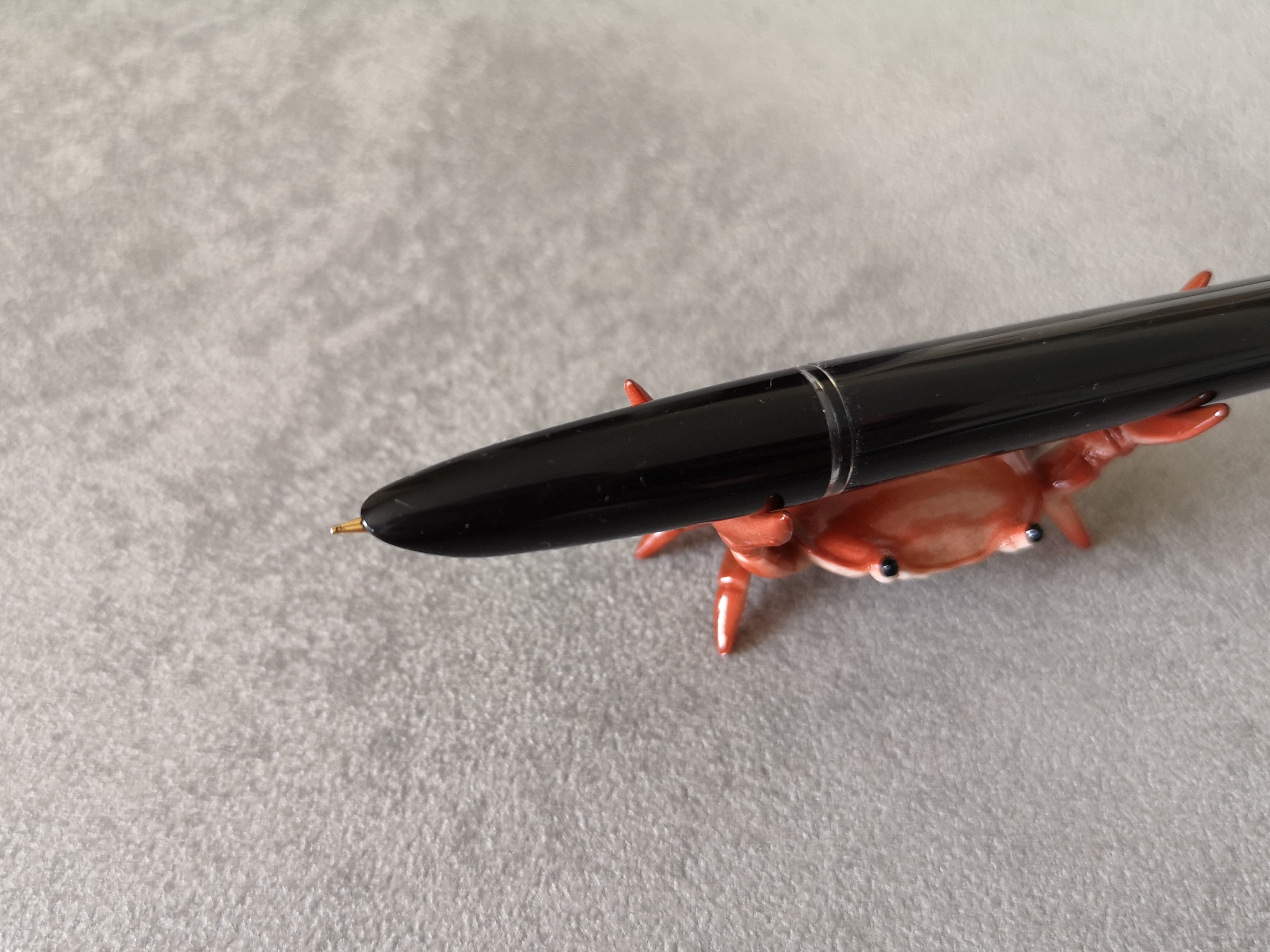 Il pennino, in acciaio, dovrebbe essere un EF ma nel mio caso scrive come un F con un flusso abbondante, tanto da essere difficilmente utilizzabile su carta economica, almeno con l'inchiostro in dotazione.