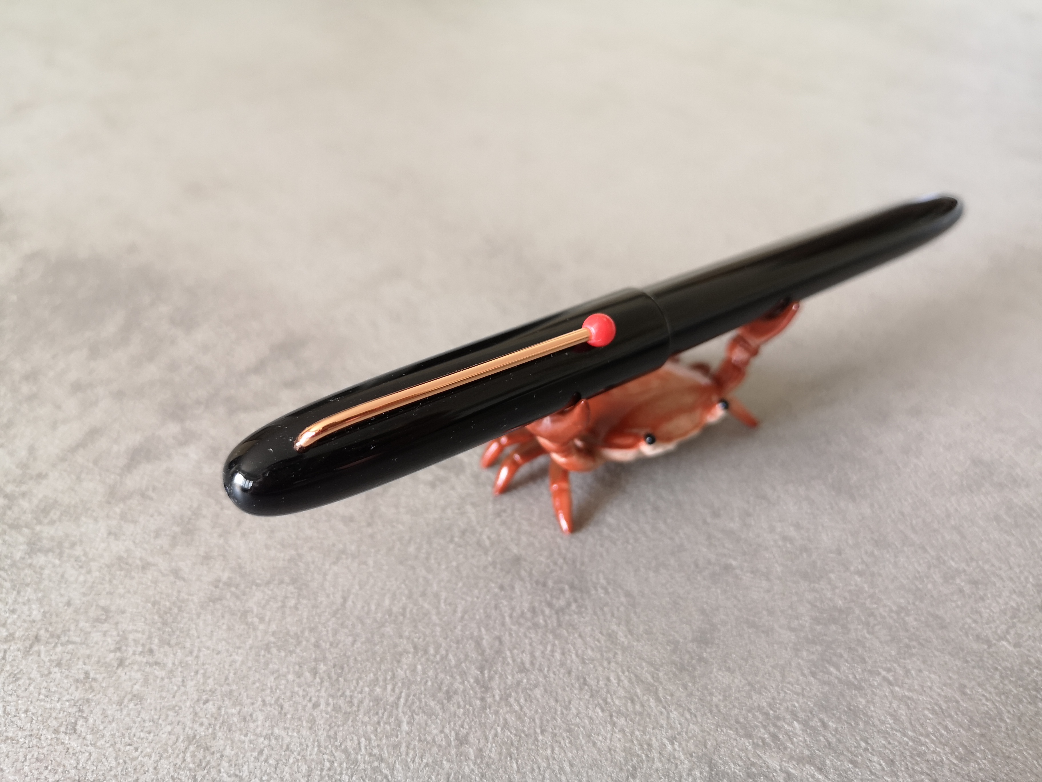Personalmente non sono molto entusiasta di come termini la sezione, avrei preferito che seguisse il profilo del pennino invece di essere arrotondata e quindi sproporzionata rispetto alla dimensione del pennino.