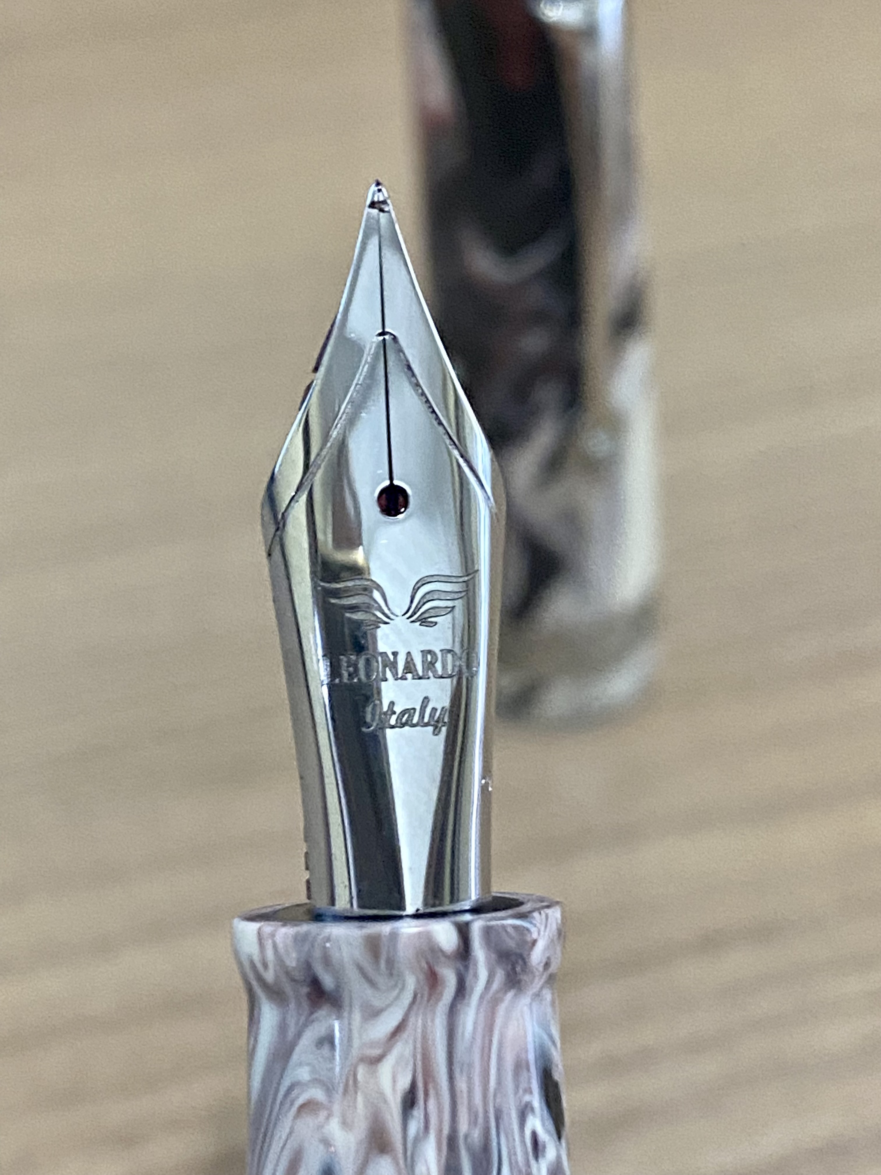 Leonardo Officina Italiana è oramai da diversi anni che ha iniziato una stretta collaborazione con Jonathon Brooks con le sue Momento Zero Grande Primary Manipulation al fine di allargare l'offerta dei suoi modelli offrendo un catalogo sempre più ampio di materiali che vanno dalle resine "standard" a quelle più esclusive arrivando a realizzazioni in celluloidi, insomma direi che ce ne è davvero per tutti i gusti e tutte le tasche, e con questa Momento Magico sono riuscito a portarmi a casa una penna esclusiva ad un prezzo abbordabile.