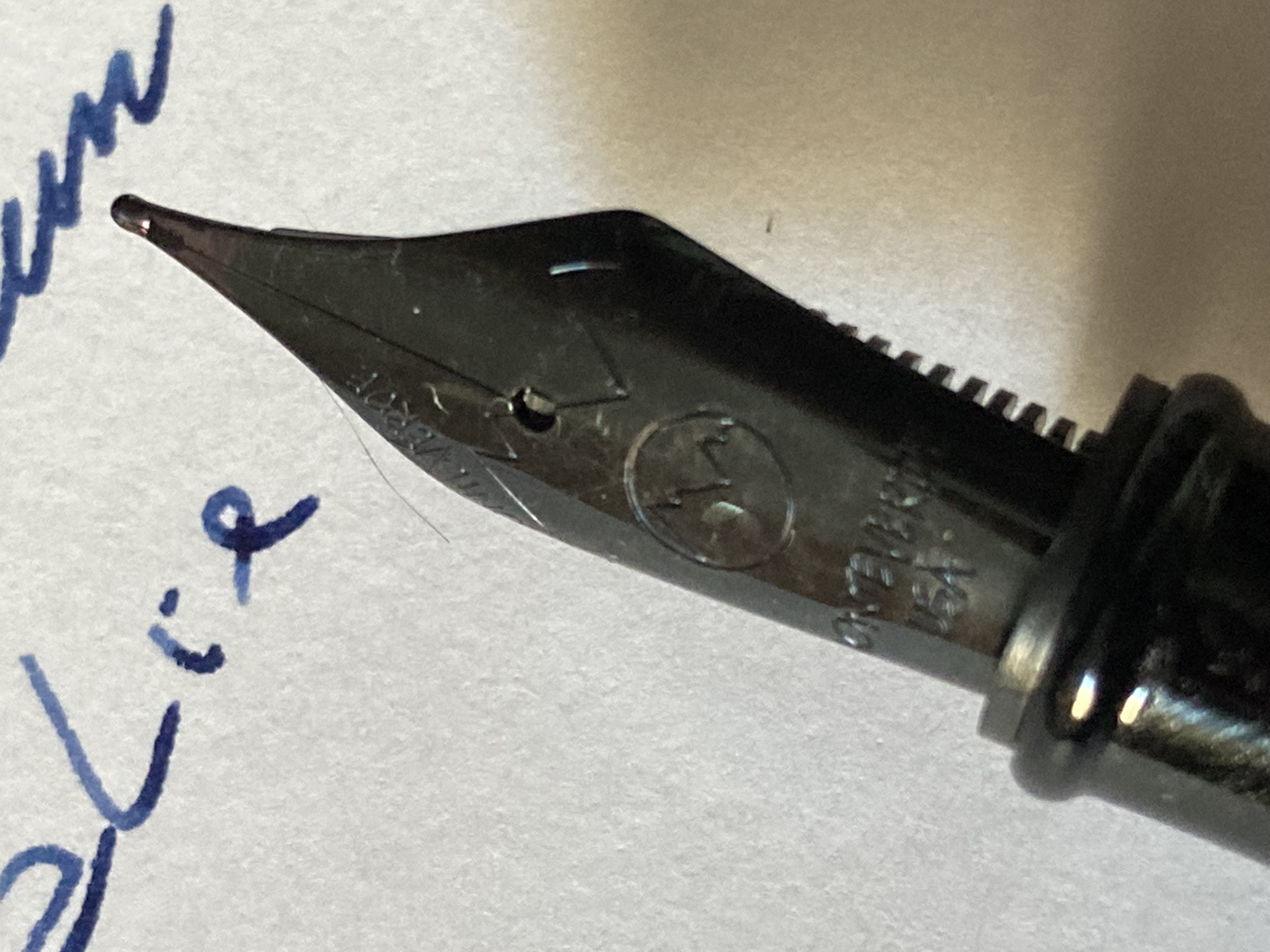 La mia è una M, e il tratto è un po' più fine di quanto mi aspettavo: diciamo un F Pelikan, per somiglianza.