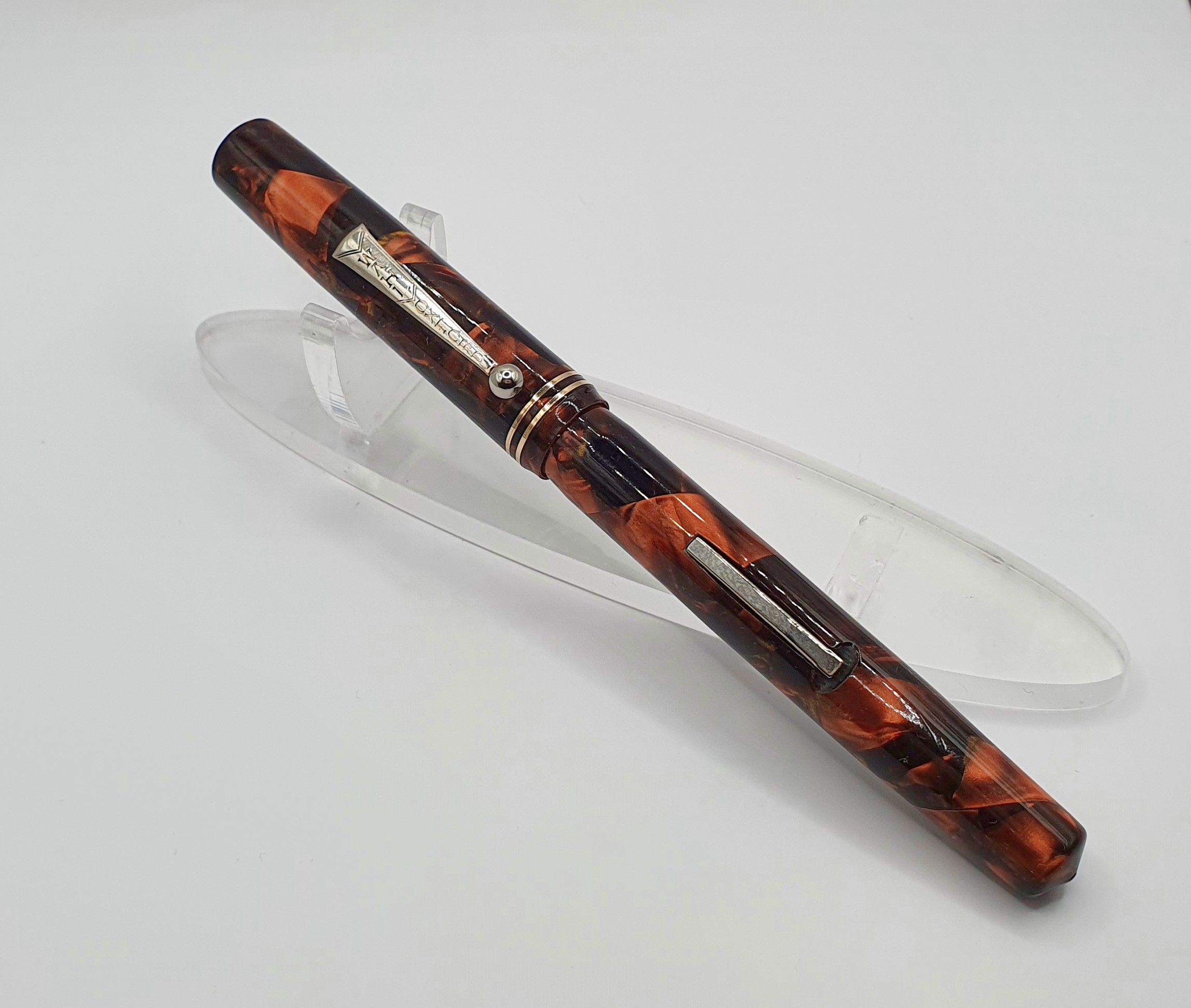 La penna è davvero bella e ben conservata e la celluloide ha selle sfumature davvero notevoli, congratulazioni per averla trovata.