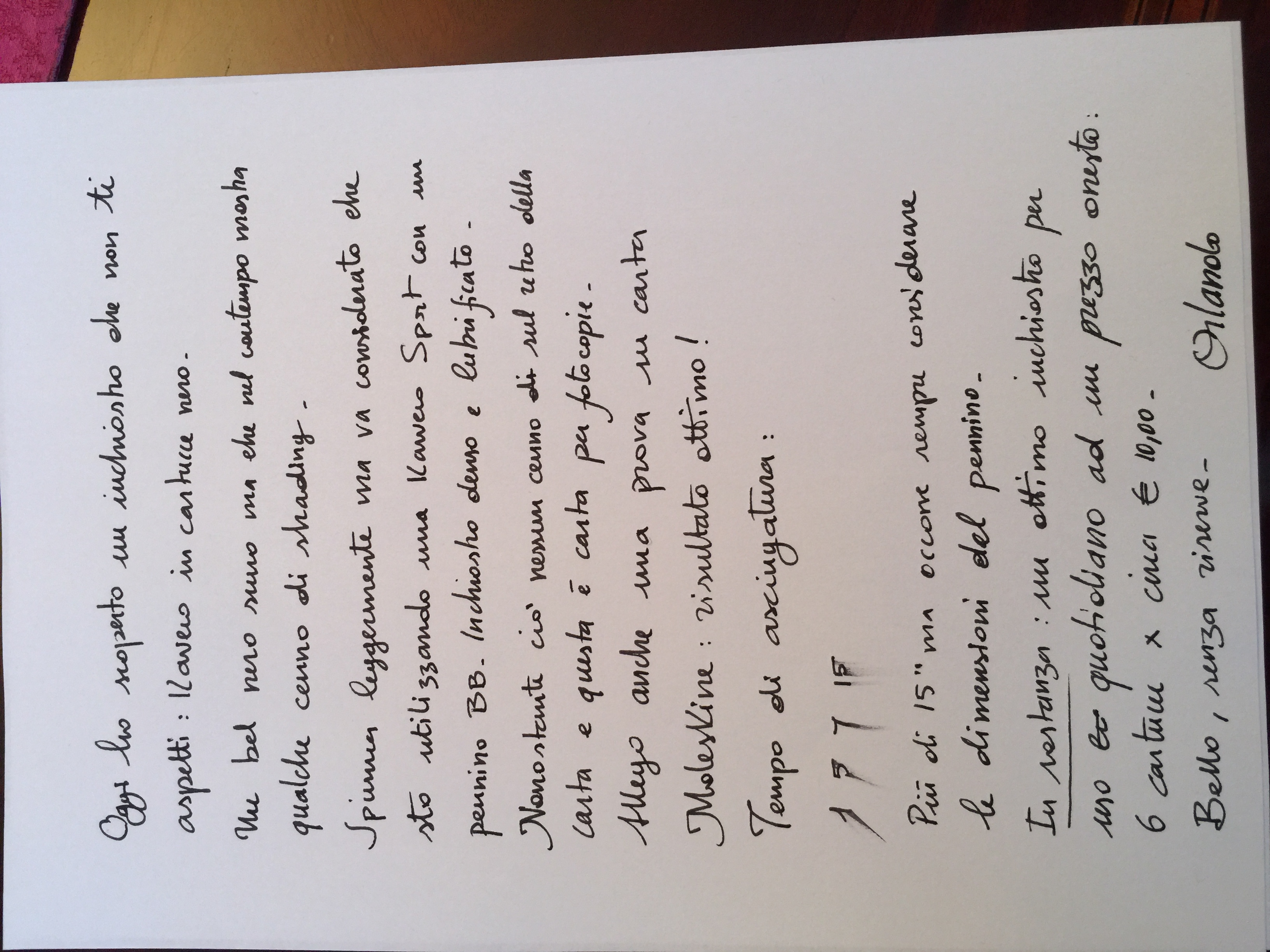 Ciao Orlando, grazie per averci dato le tue impressioni su questo inchiostro.