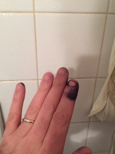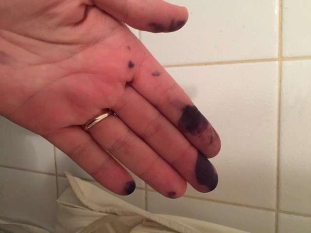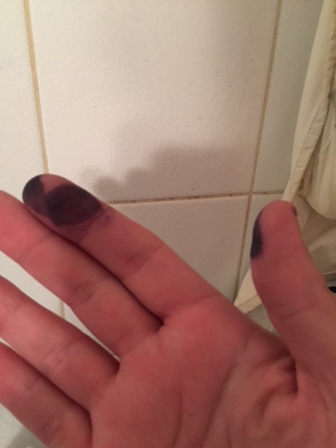 Questo è il risultato dopo numerosi lavaggi con acqua, sapone e spazzolina per le unghie.