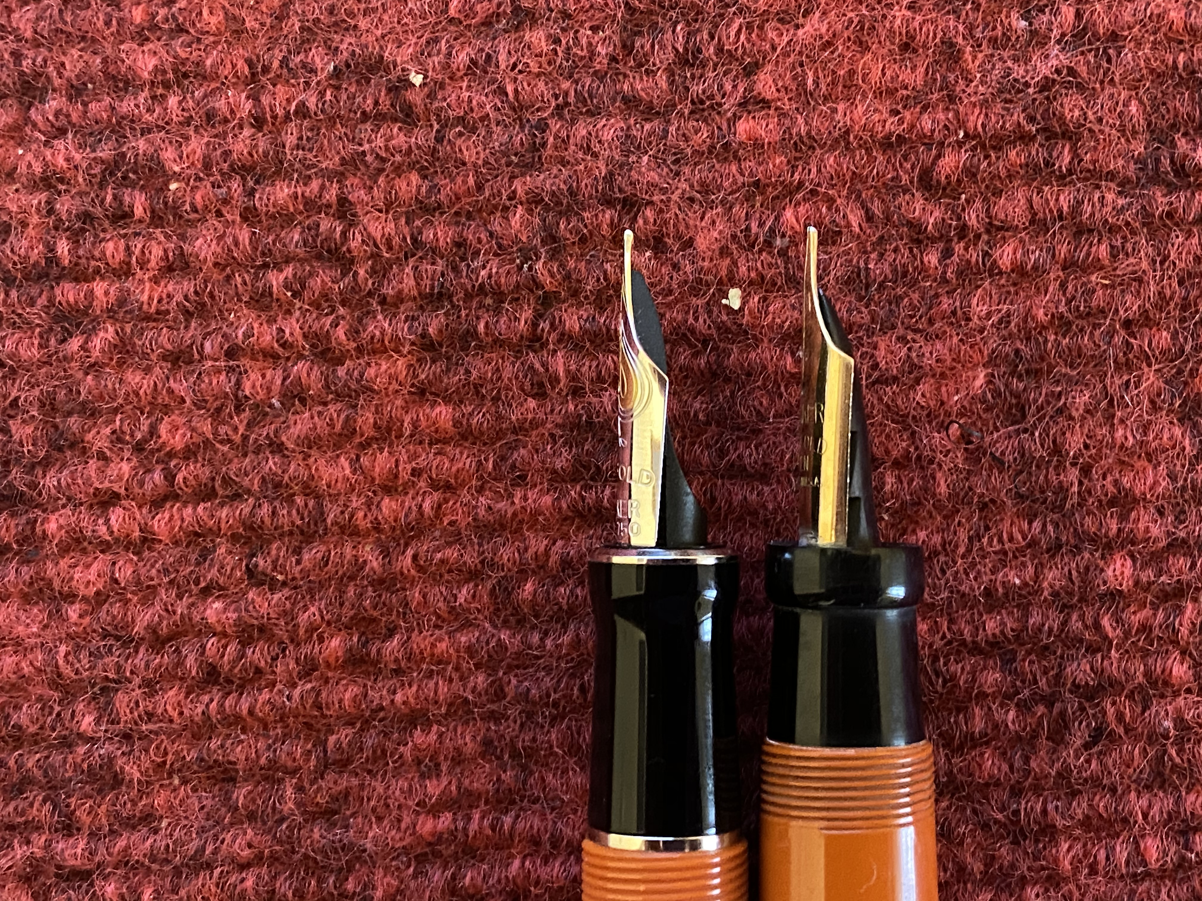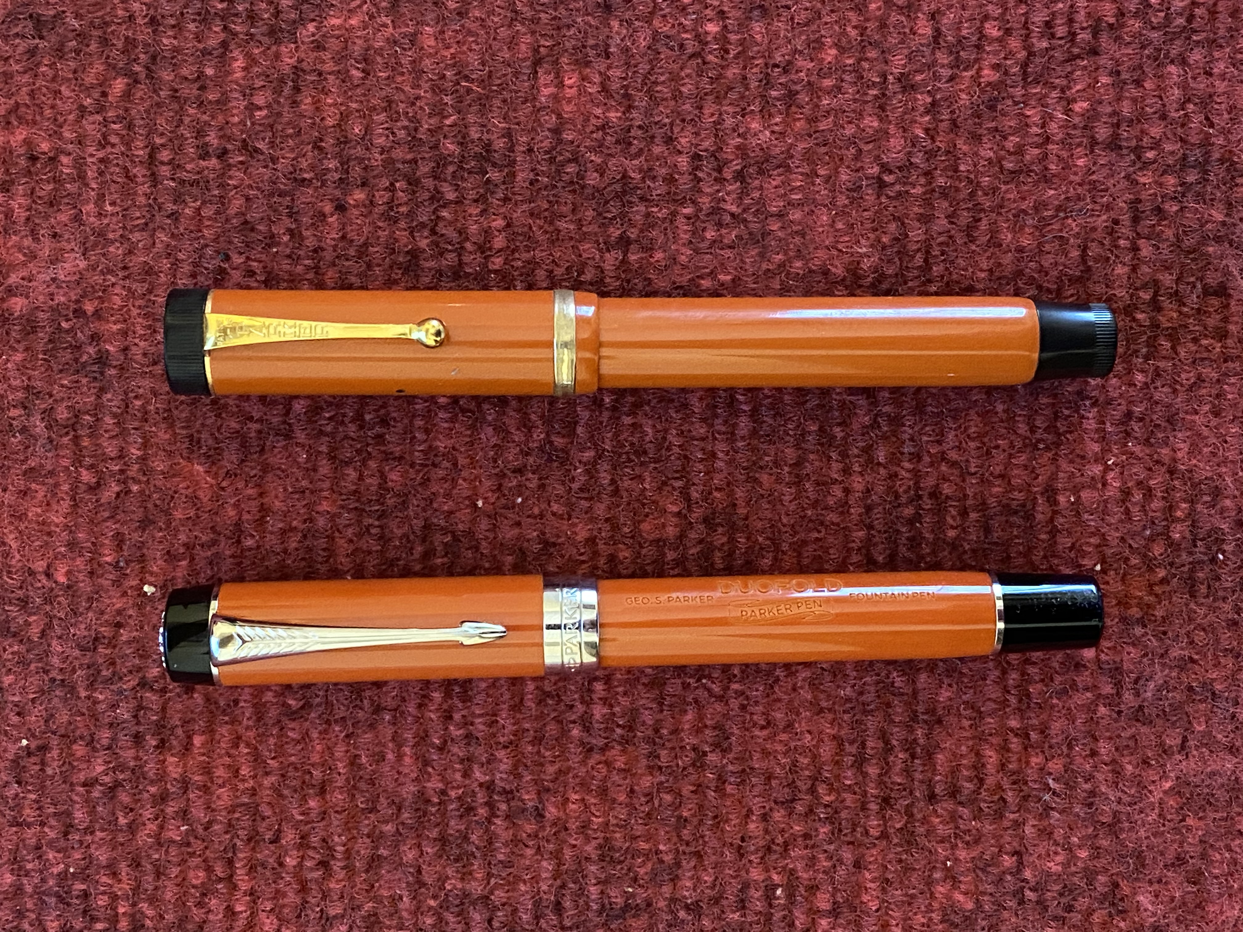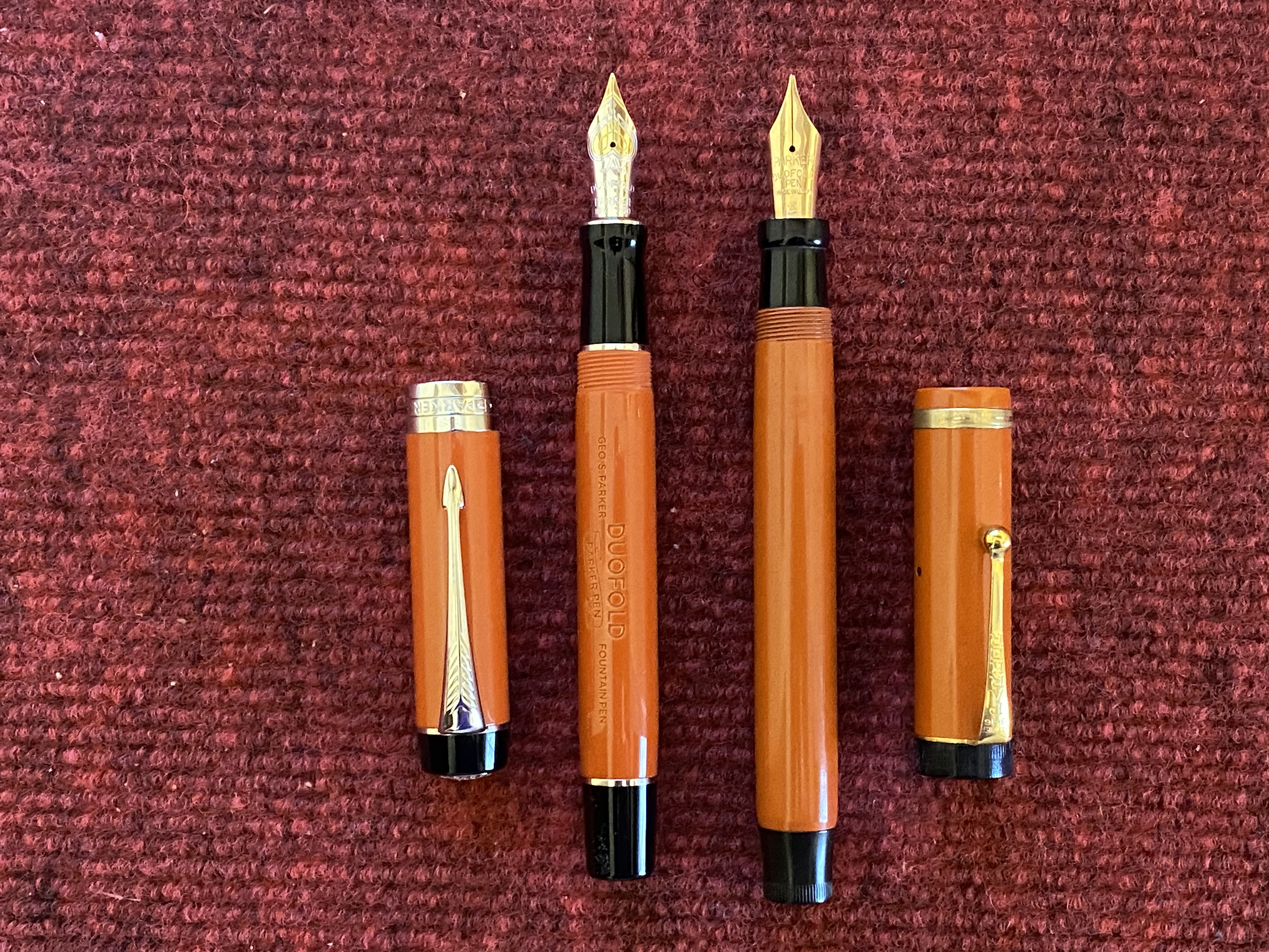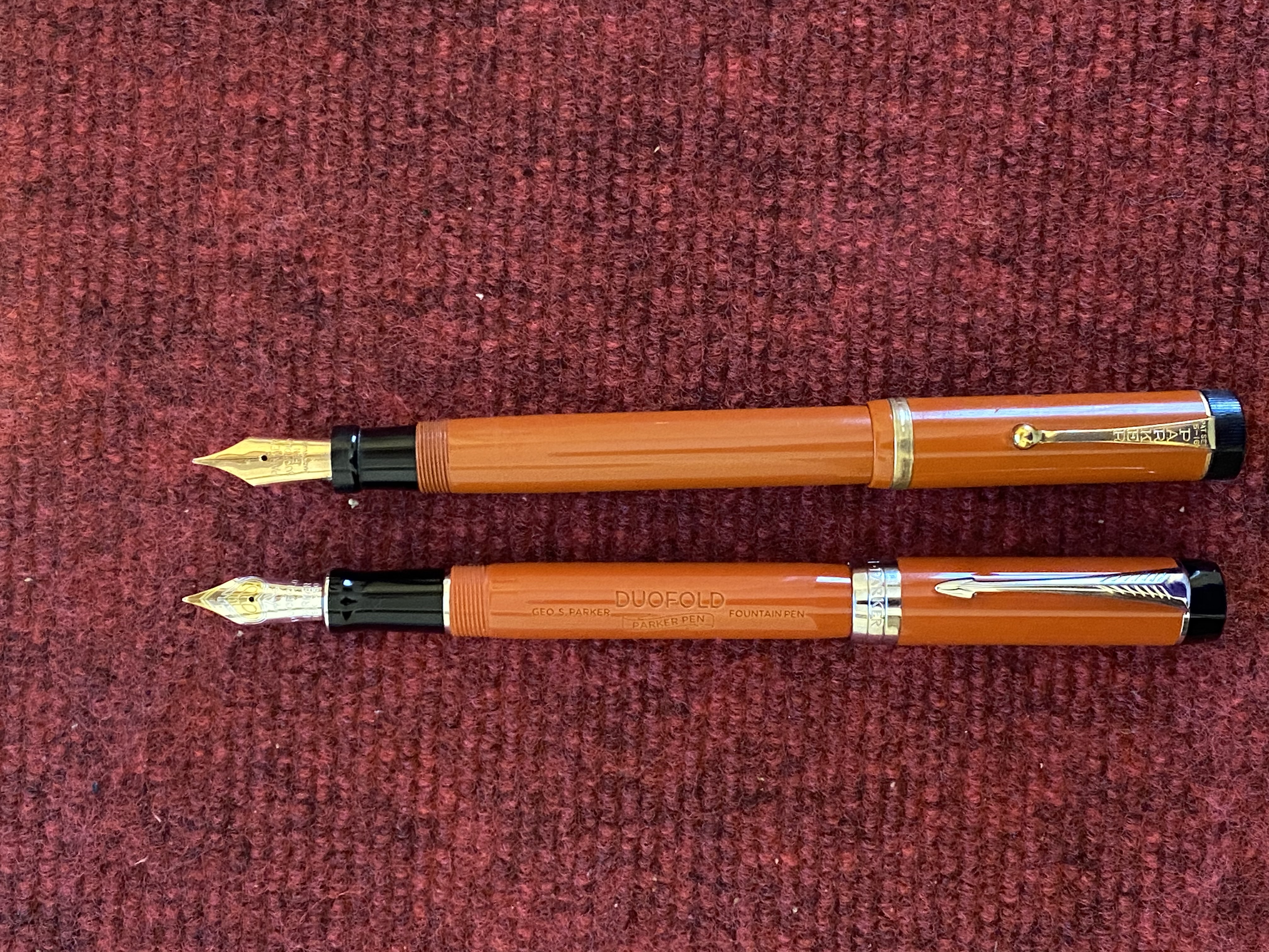 Poi però mi sono chiesto, ma quanto ha giocato il fascino del vintage su questa scelta? Diciamo sempre che non ci sono più aziende in grado di fare penne come quelle di una volta, soprattutto poi qualcosa di paragonabile ad una icona come la Big Red, ma quanto è vero? La Parker di oggi non è neanche l’ombra dell’azienda che lanciò sul mercato penne del calibro della Duofold, la 51, la 75, giusto per citare alcuni modelli, ma sarà in grado di fare una buona penna con buoni materiali che possa rivaleggiare con una vecchietta di 100 anni ? Così ho preso la nuova Parker Duofold Big Red Centennial, la misura grande giusto per intenderci, e le ho messe fianco a fianco, vediamo un po’.