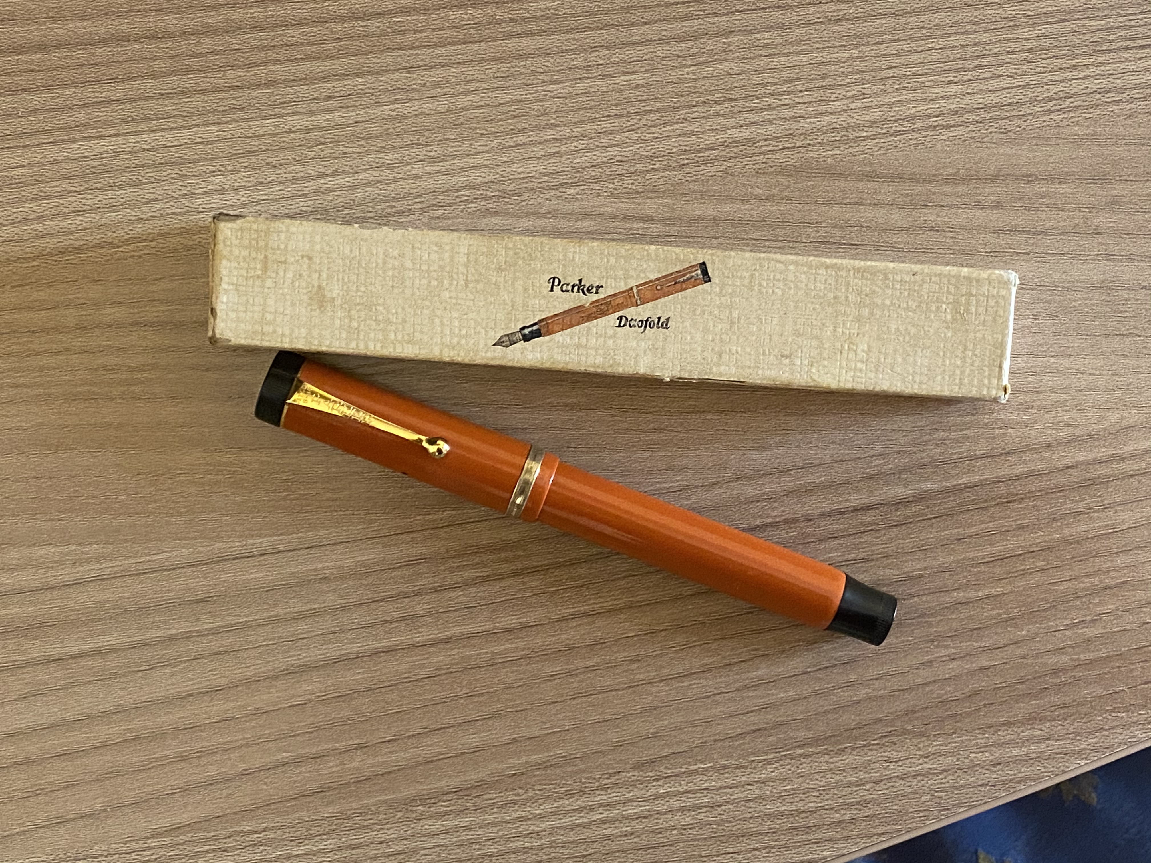 Molte volte si fa una scelta per partito preso o perchè ci facciamo influenzare da chi e cosa ci circonda. Lo ammetto candidamente che è stato questo il motivo per cui partii alla ricerca della più iconica penna flat-top in arancione. La Parker Dufold Big Red senior, a voler essere dei puristi storici, avrei dovuto prenderla nella sua prima versione in ebanite, ma a parte che non è facilissima da trovare, non è un investimento alla portata di chi si avvicina a queste icone storiche. Così mi “accontentai” della più umile e comune versione in permanite, peraltro un esemplare completo della sua scatolina in cartone, evidentemente riciclata per contenere ferri da uncinetto.