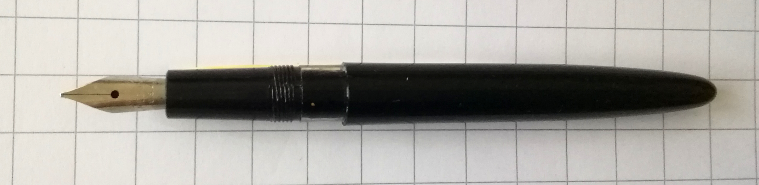 Più in là non arrivo, ma ne ho visto su Ebay una simile (non uguale) di quel periodo con pennino in acciaio in vendita dagli USA: non è però indicato il modello, né se il pennino sia originale.