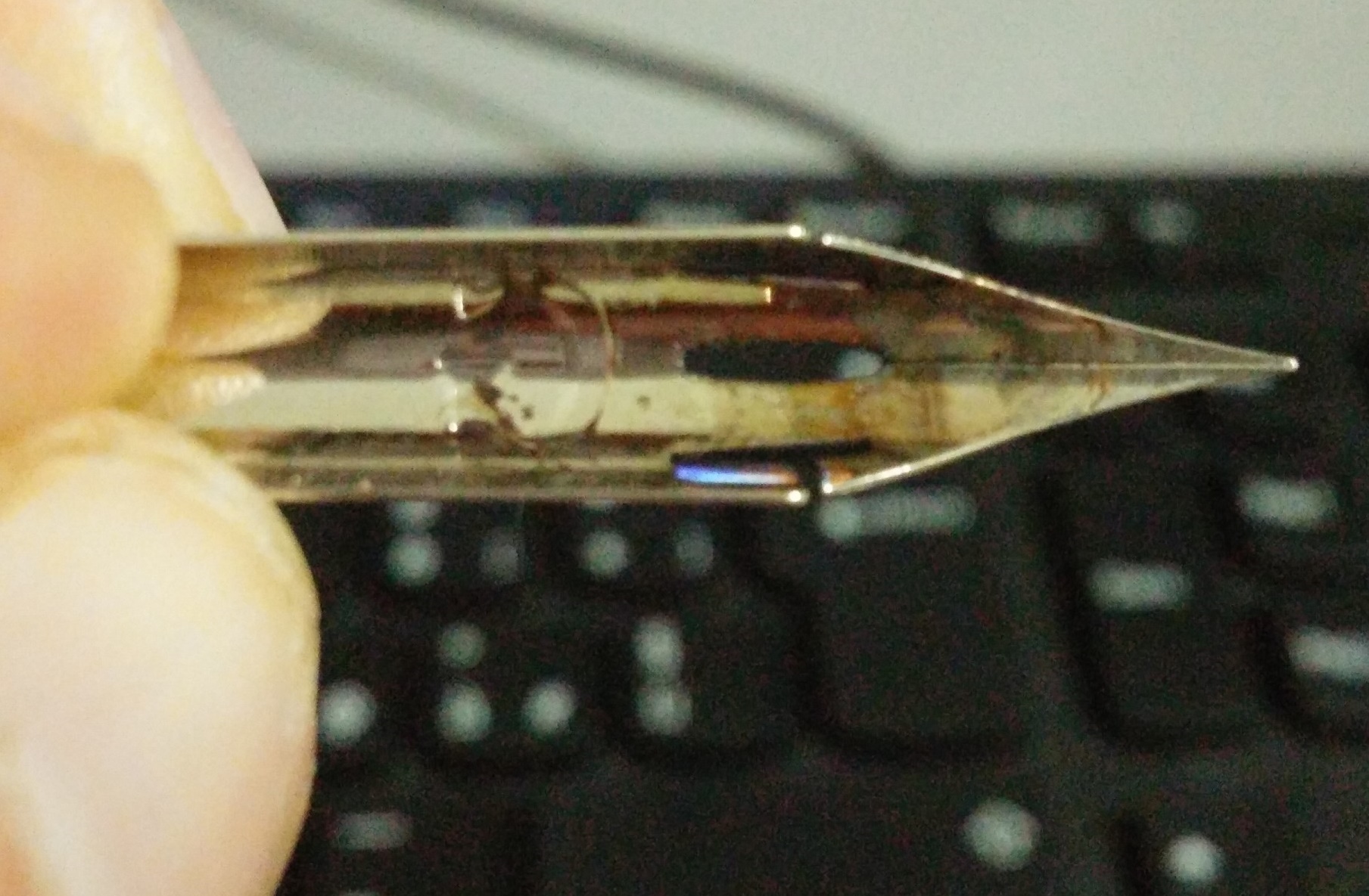 Se quello è il risultato dopo una settimana di utilizzo, lasciando sempre il pennino sulla penna, puoi dirti soddisfatto: quel grado di corrosione con un Brause Rose (sulla Noodler's Ahab) lo si raggiunge dopo un solo giorno!