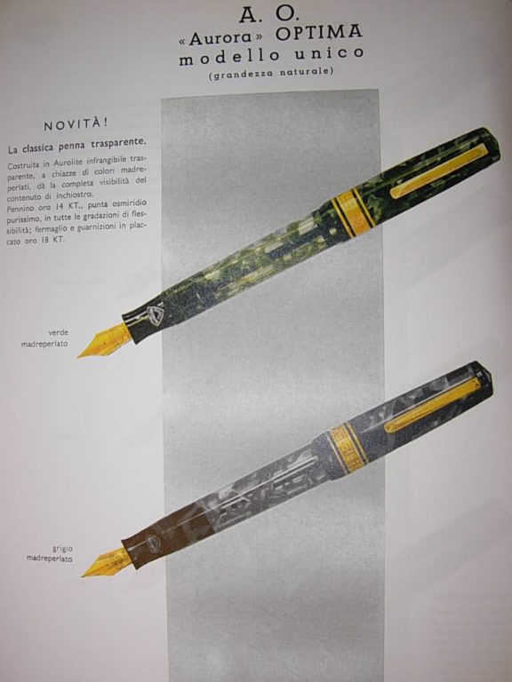 E' una prima serie della Optima moderna, quella con l'Auroloide che si ritirava: si riconosce per la sezione cilindrica con quel canale scavato ben definito verso la fine.