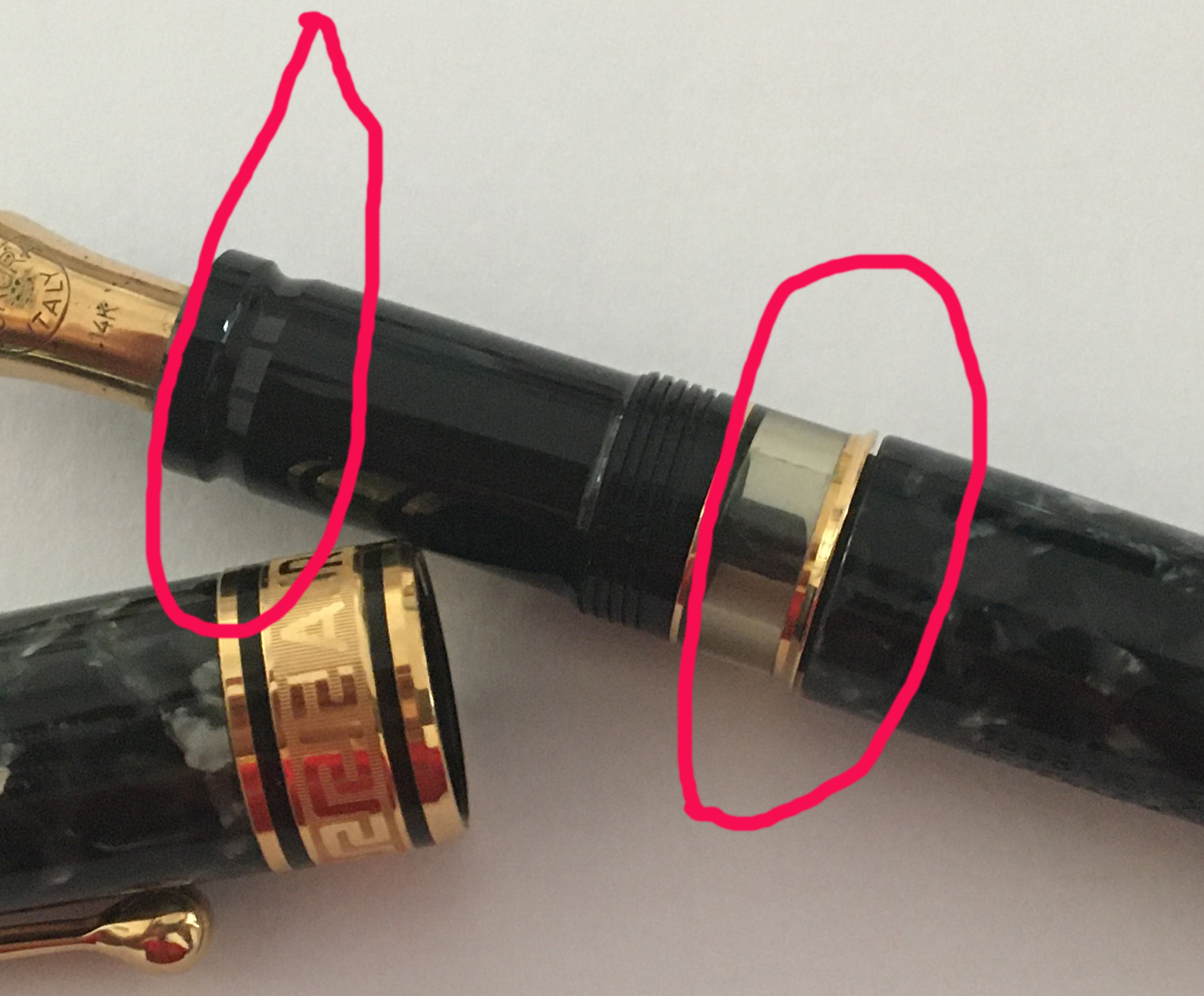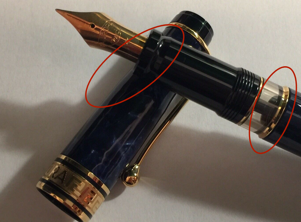 A me questa cosa ha mandato in fissa. Fortunatamente avevo una scatola da una Talentum piccola venduta. Poi ho cercato il pennino decorato per la versione nuova. Siccome con lo trovavo ho dovuto prendere una Talentum grande da cui ho cannibalizzato il pennino. E sono riuscito a vendere il corpo della Talentum prima di trovarle un altro pennino spare! Così ho chiuso questo circolo infernale...