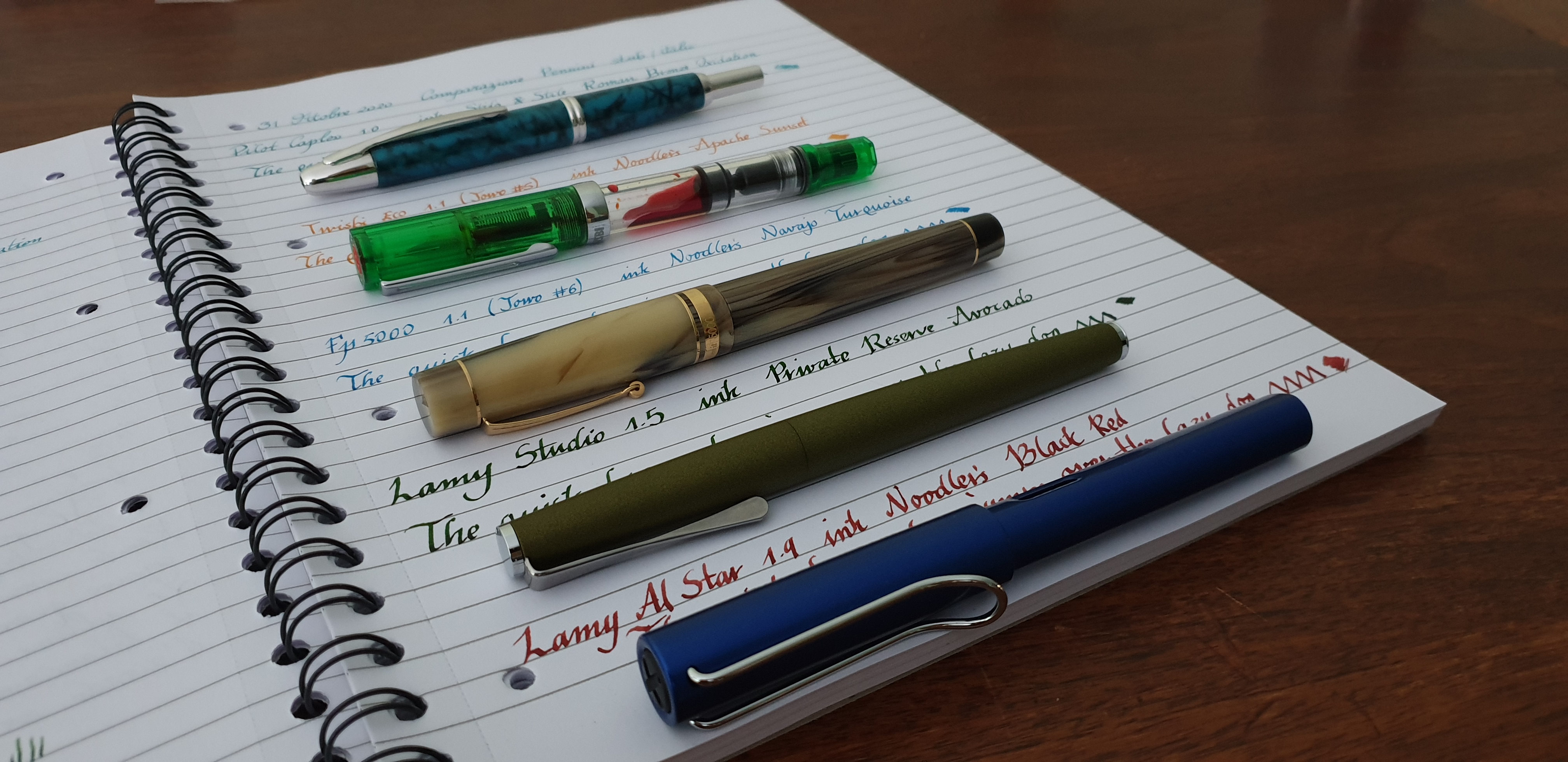 Gli inchiostri sono tutti diversi perché tutte le penne erano già cariche e non avevo voglia di buttare inchiostro/lavare tutto etc....Mi sono già sporcato le dita così