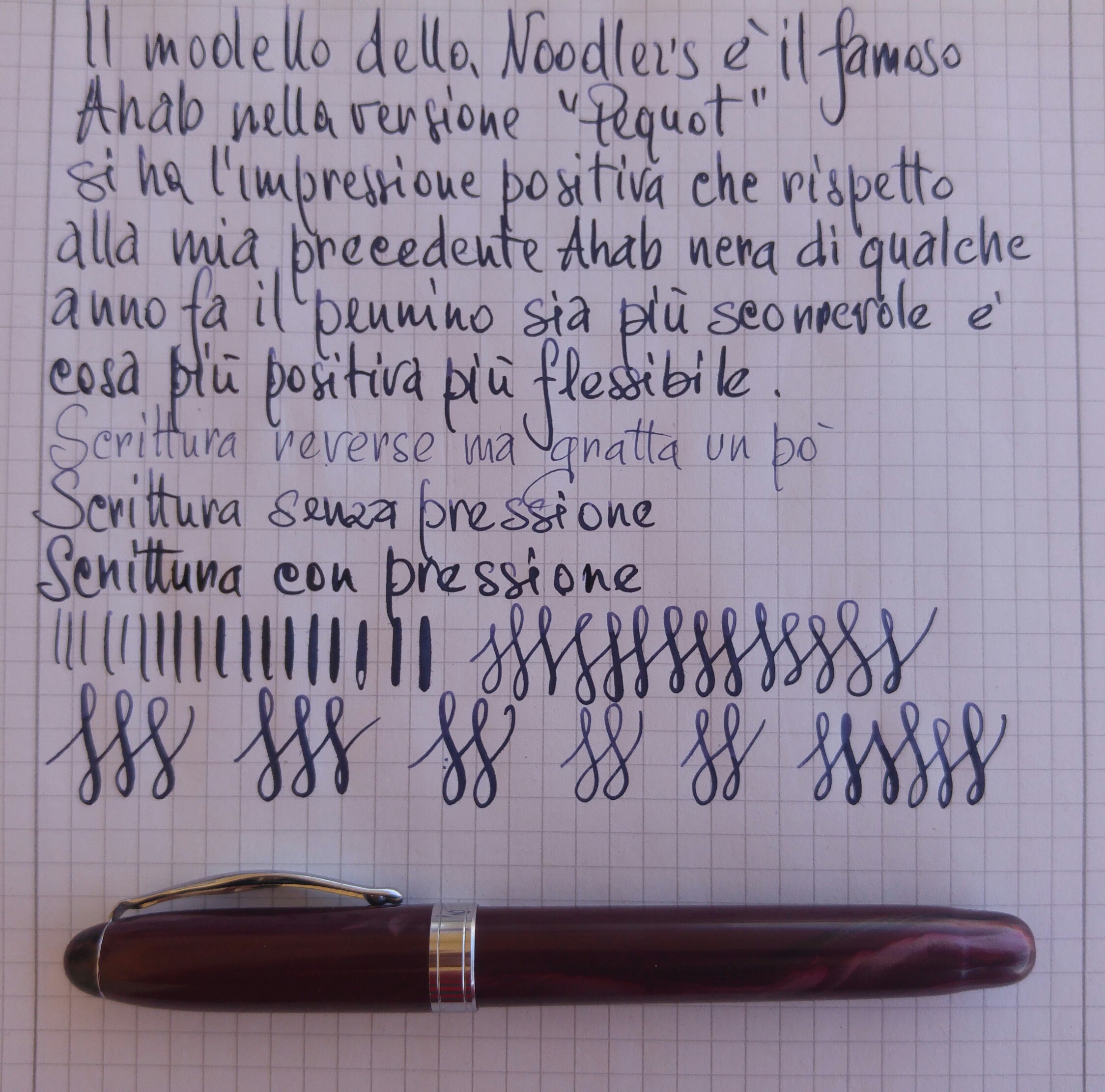 Spinto dalla curiosità delle tante recensioni su questa penna, in pratica una specie di "entry level" nel mondo del pennino flessibile (con tutte le limitazioni, lo so, ho letto tutti i vari post e visto qualche filmatino), Ho comprato finalmente una Noodler's Ahab, nella versione dignitosamente nera