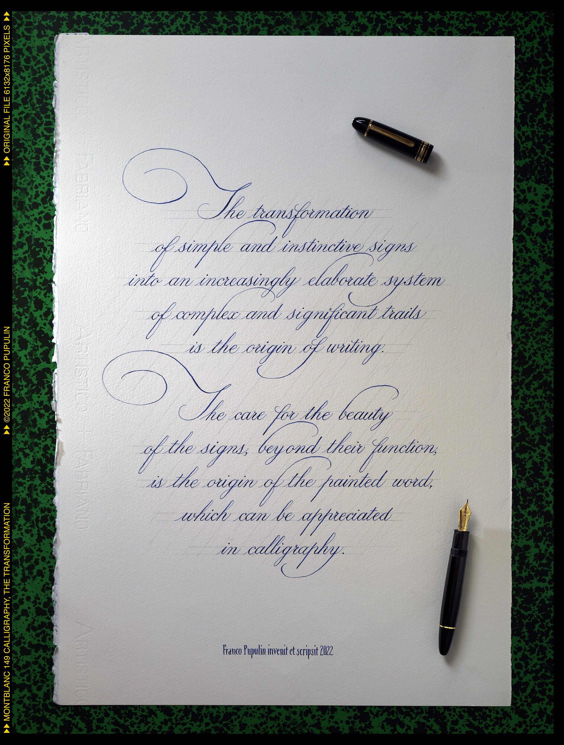 Avevo poi pensato di tradurre in italiano il testo inglese, al piede della fotografia con la versione finale. Poi, però, ho pensato meglio tradurlo anch'esso in una versione calligrafica, ma di calligrafia moderna. Mi piacciono tutte le calligrafie che si definiscono come "gestuali", e tra la altre cose la 149 Calligraphy sembra proprio uno strumento indicato per eseguirle.