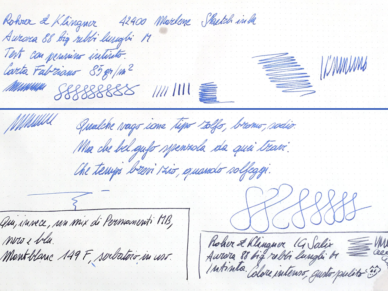 Le penne sono una Aurora 88 big rebbi lunghi M intinta nei due R&K e una MB 149 F caricata con il mix MB.