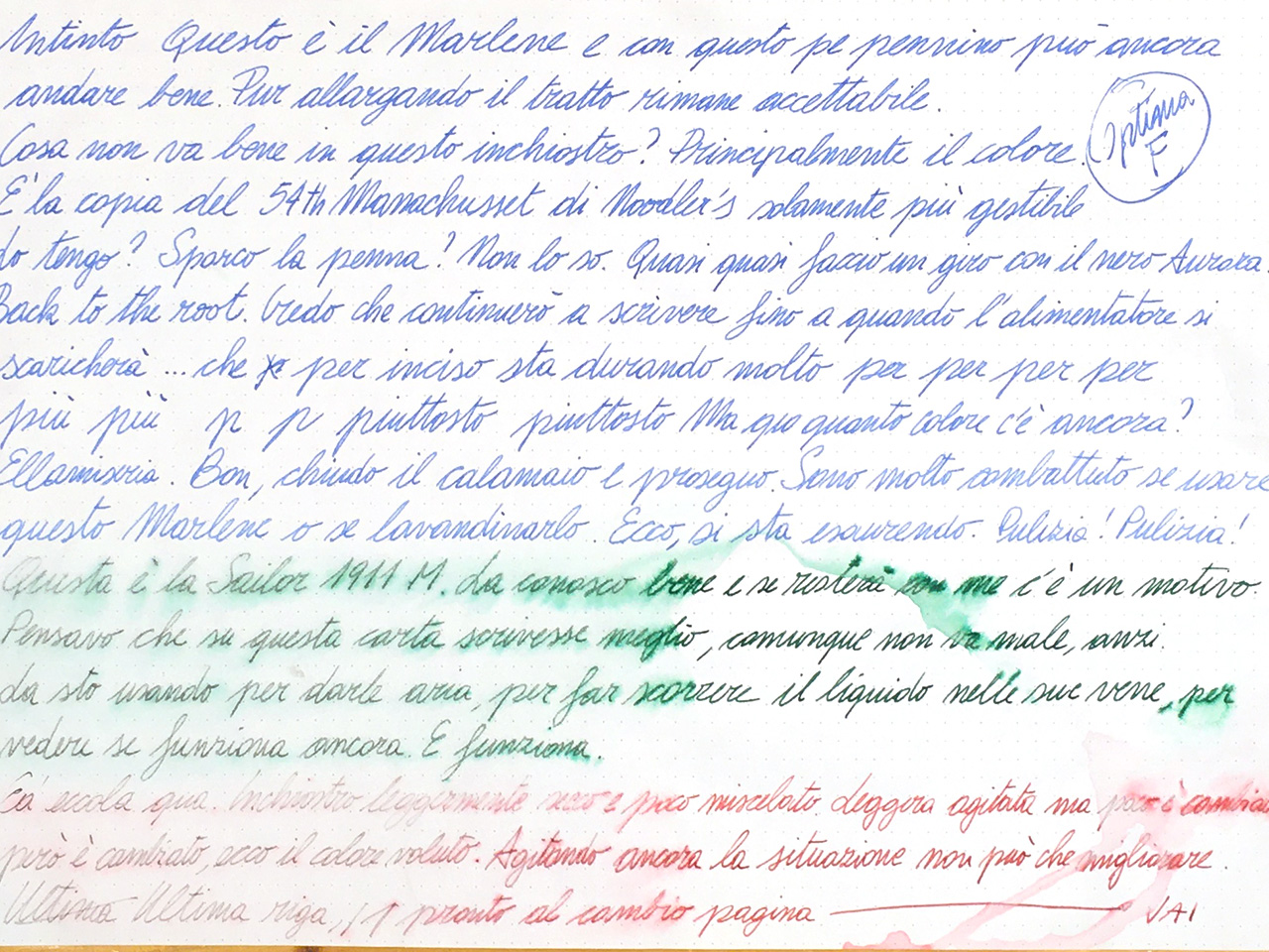 La prima immagine è di sola scrittura, tre inchiostri e due penne.