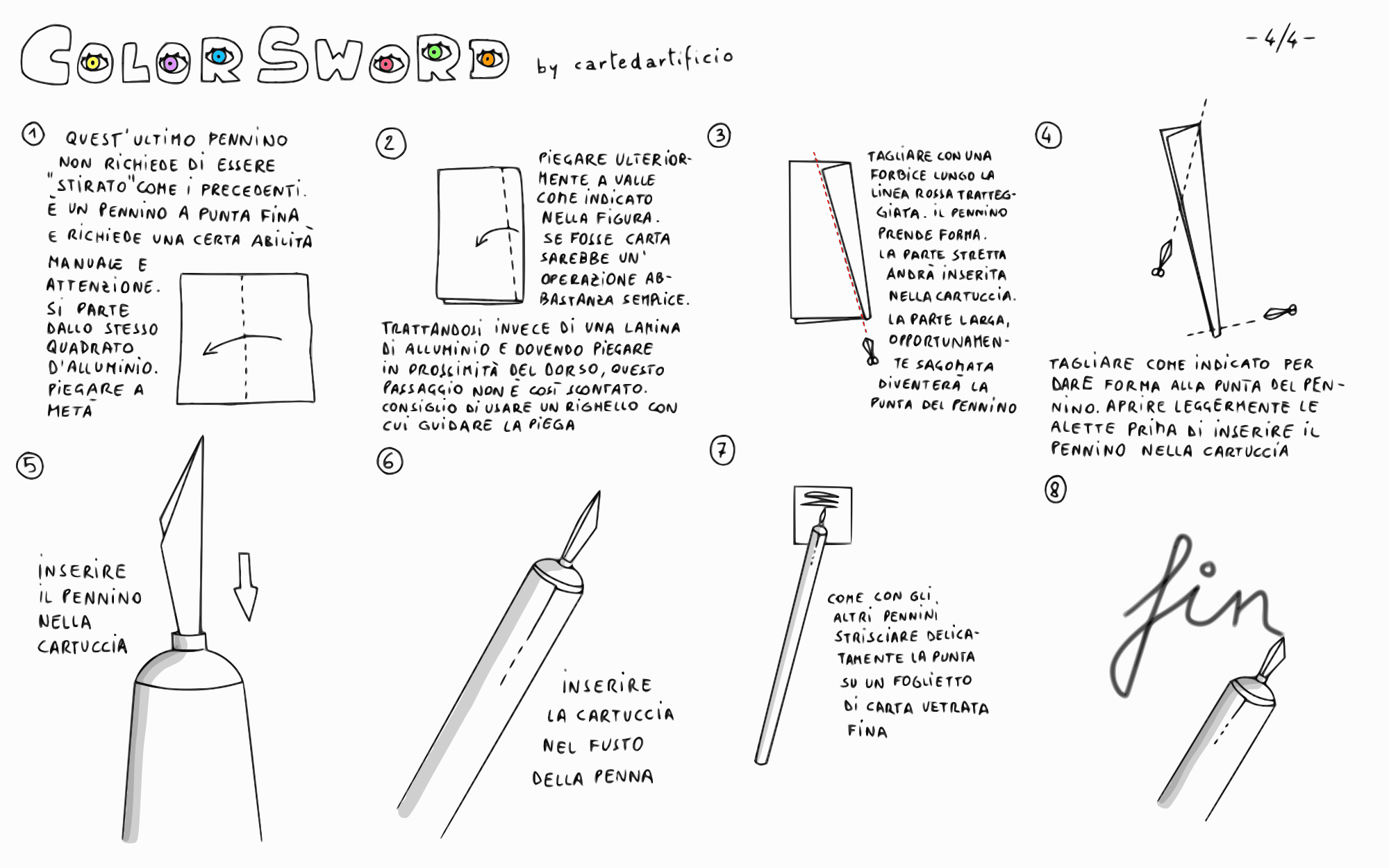 Il terzo pennino, il ColorSword, è quello che più somiglia al pennino di una stilografica tradizionale. La sua particolarità è di essere il risultato di una doppia piega (il che lo rende appena più complesso del MagicThorn che dei tre pennini è il più immediato e versatile)