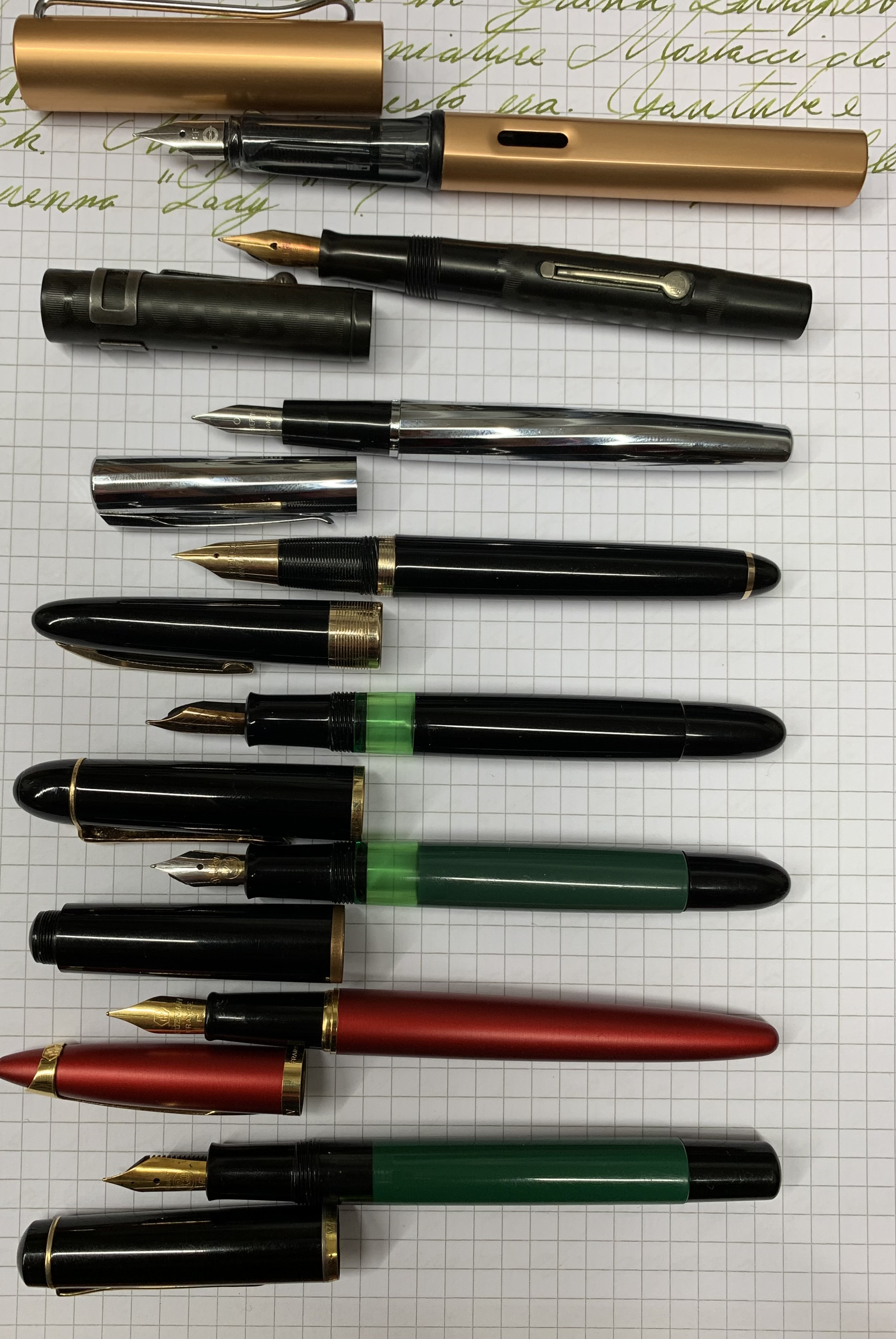 Le mie piccole stilografiche, graziose e, piacevoli da guardare e usare. Ne possedete? Potreste postarle per mia pura curiosità.