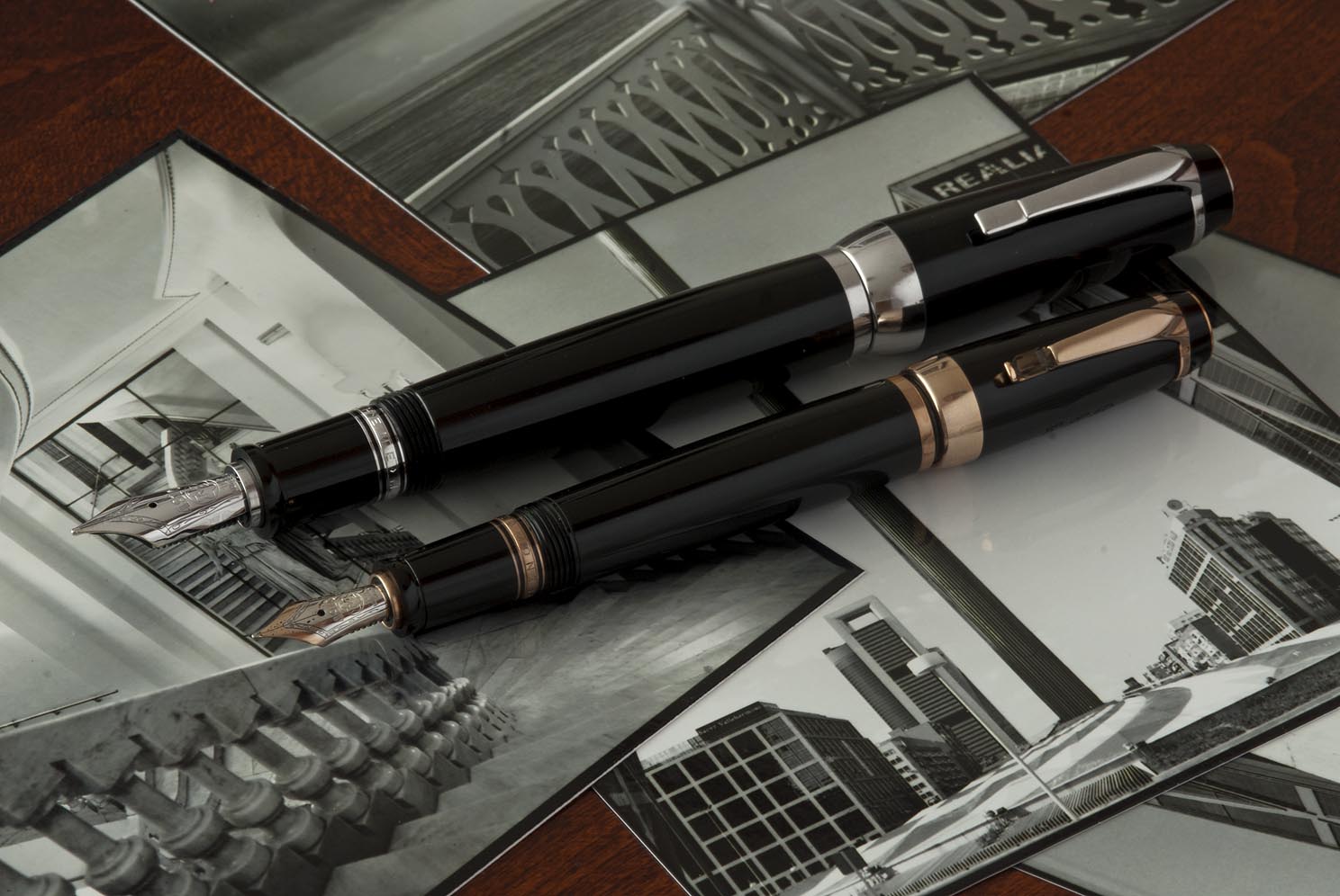 Quando arrivò la Big Size, in casa avevamo già un’altra Bohème, una stilografica Marron, con finiture in oro rosato, che avevo regalato a mia moglie in occasione di un Natale in Italia. La piccola Marron, con il suo pennino retrattile squisitamente morbido e i suoi colori perfettamente abbinati, continua ad essere - a distanza di anni - una delle penne più belle di casa Pupulin. Nella foto che segue potete vederla accanto alla sua “sorella grande”, per apprezzarne le dimensioni contenute. Quando é calzata - ed é disegnata per esserlo quando si scrive - é appena piú lunga di una Meisterstück 146 senza il cappuccio.