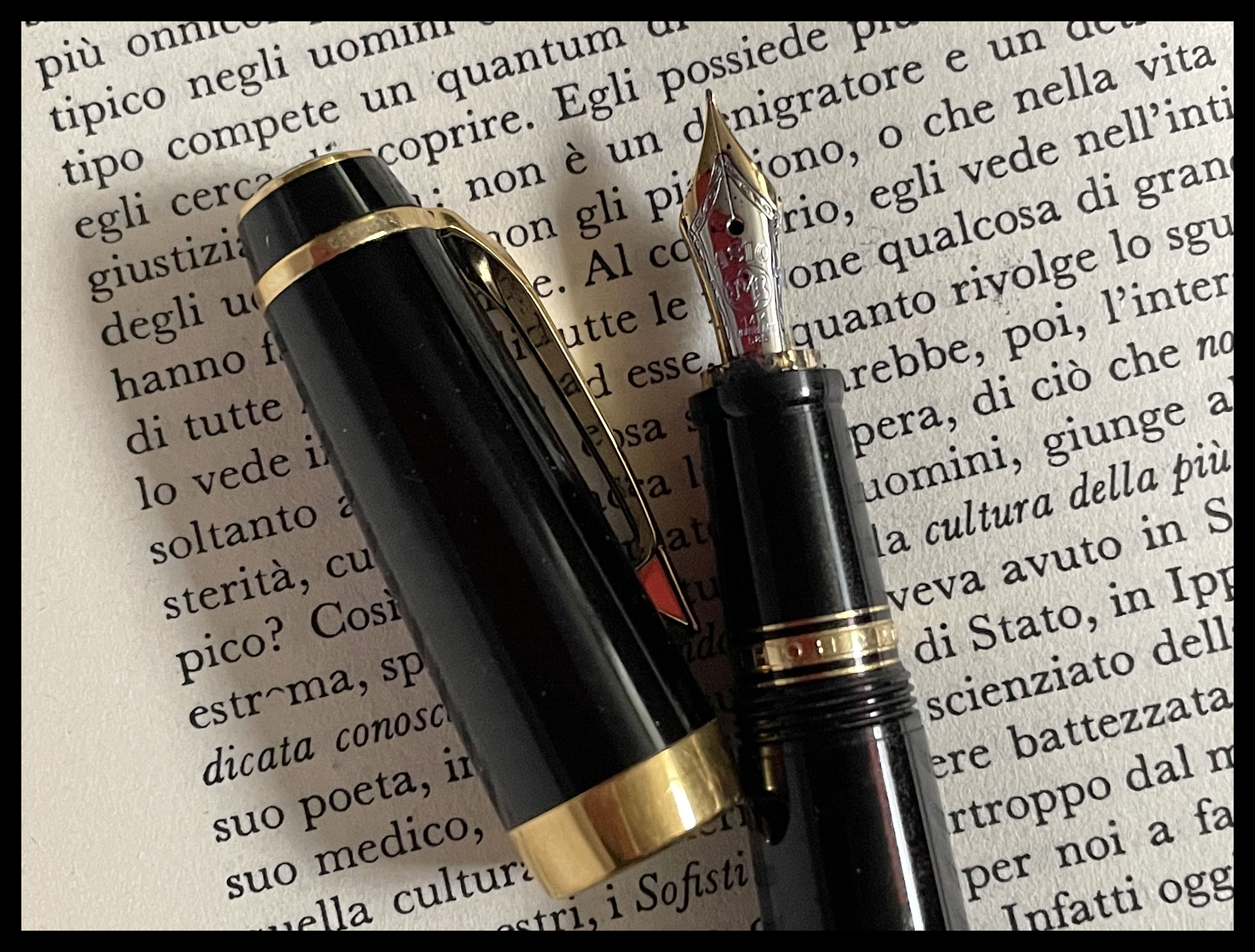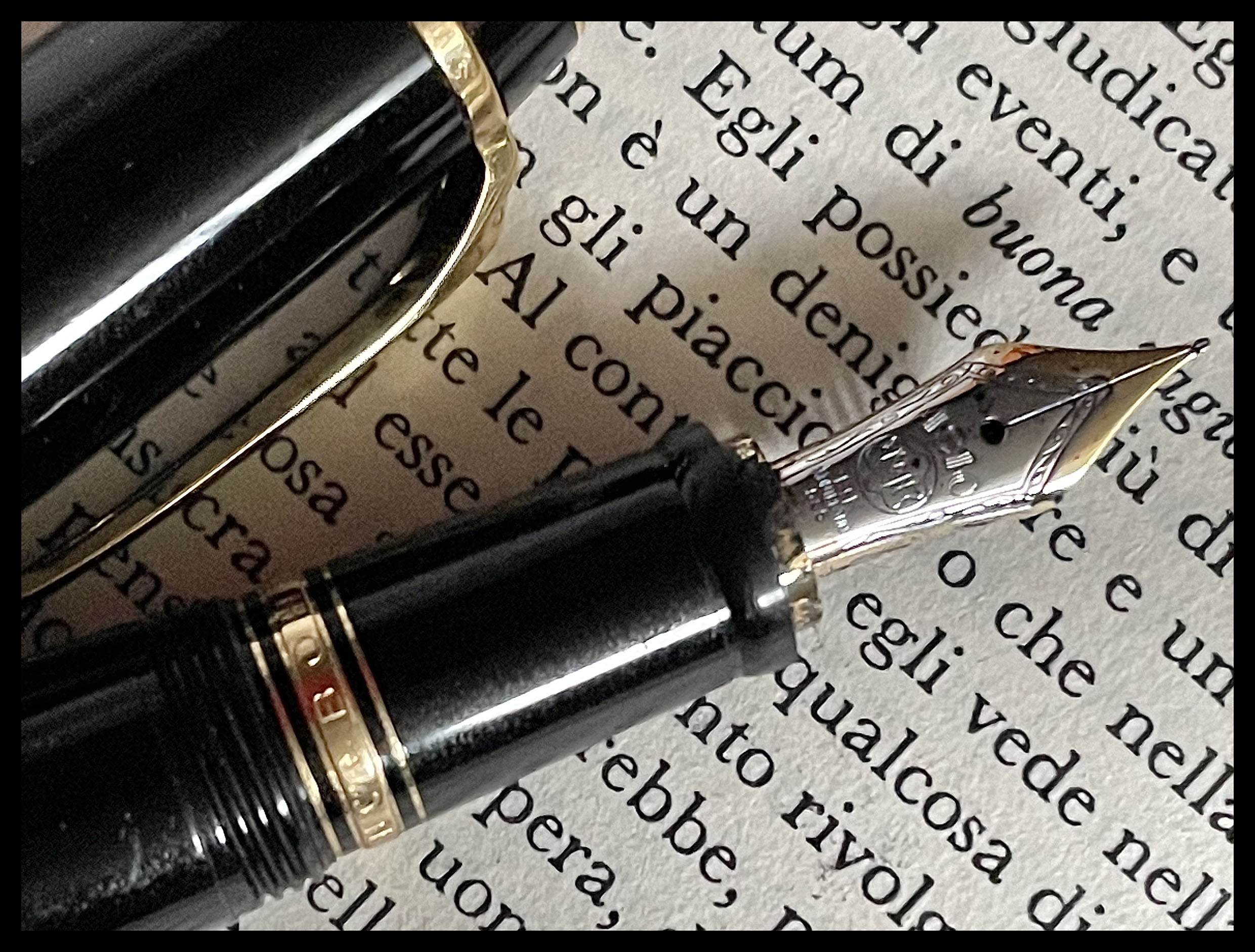 La Bohème Big Size é una penna imponente. Ha la “presenza” di una 149 e, benché disegnata per poter avvitare il cappuccio sul fondello, credo sia una penna da usare senza calzarla - a meno di avere mani veramente grandi. Ha uno splendido pennino retrattile e puó essere alimentata esclusivamente attraverso le cartucce. All’epoca della sua introduzione, una Bohème Big Size costava quanto una 149, e credo che questo non abbia contribuito al suo successo commerciale. Una 149 era, ed é, uno strumento universalmente riconoscibile, troppo costoso per una penna in plastica - per quanto di una funzionalità che definirei perfetta -, ma degna dello sforzo economico “in più” proprio per il fatto di rappresentare l’epitome della penna stilografica. La Bohème Big Size é altrettanto imponente ma, a parità di prezzo, dovette sembrare una penna senza il pedigree di una Meisterstück. A parte l’ovvio inconveniente dell’alimentazione limitata alle cartucce (e alla difficoltà di pulirla, comune a moltissime delle “rientranti”), la Bohème Big Size é una penna bellissima da usare. Se ne aveste voglia, potete trovarne una lunga e appassionata rassegna mia a questo indirizzo della rete: https://www.fountainpennetwork.com/foru ... er-review/
