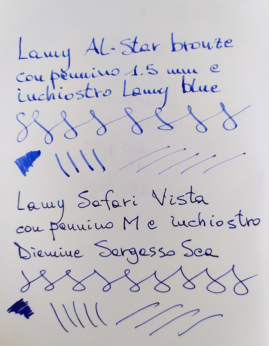 Se può essere utile, confronto tra pennino M e stub 1.5 Lamy: Scusate la pessima grafia e la pessima foto