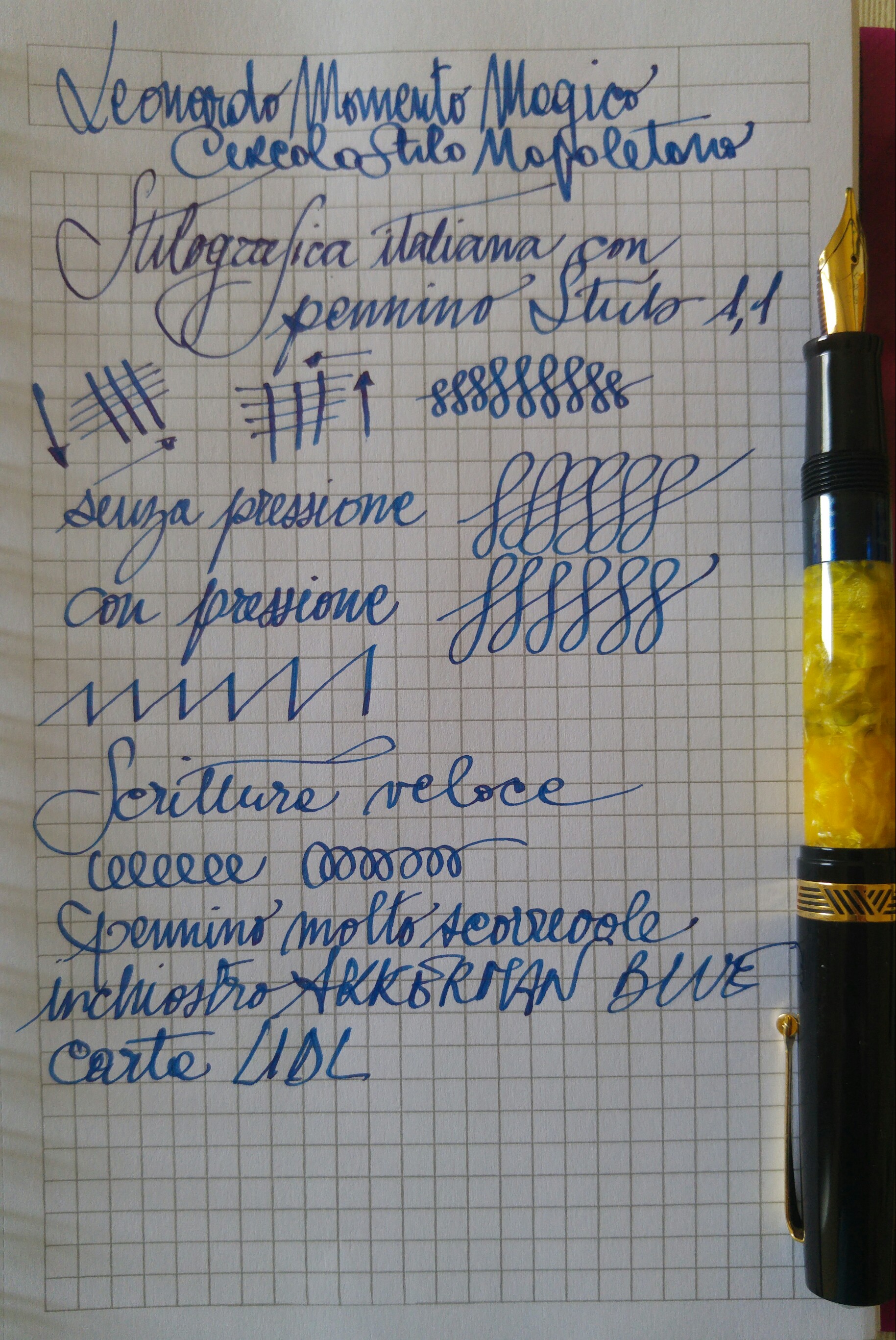 Ad onor del vero anche uno stub 1.1 in acciaio alla fine si presta a prendere note, condivido quanto detto da diversi qui, a patto di darsi un po' più di spazio (meglio un quadernone A4 e una carta piuttosto liscia - Rhodia/Clairfontaine) lo stub 1.1 si può usare anche per scrivere abbastanza veloce a caratteri più grandi.