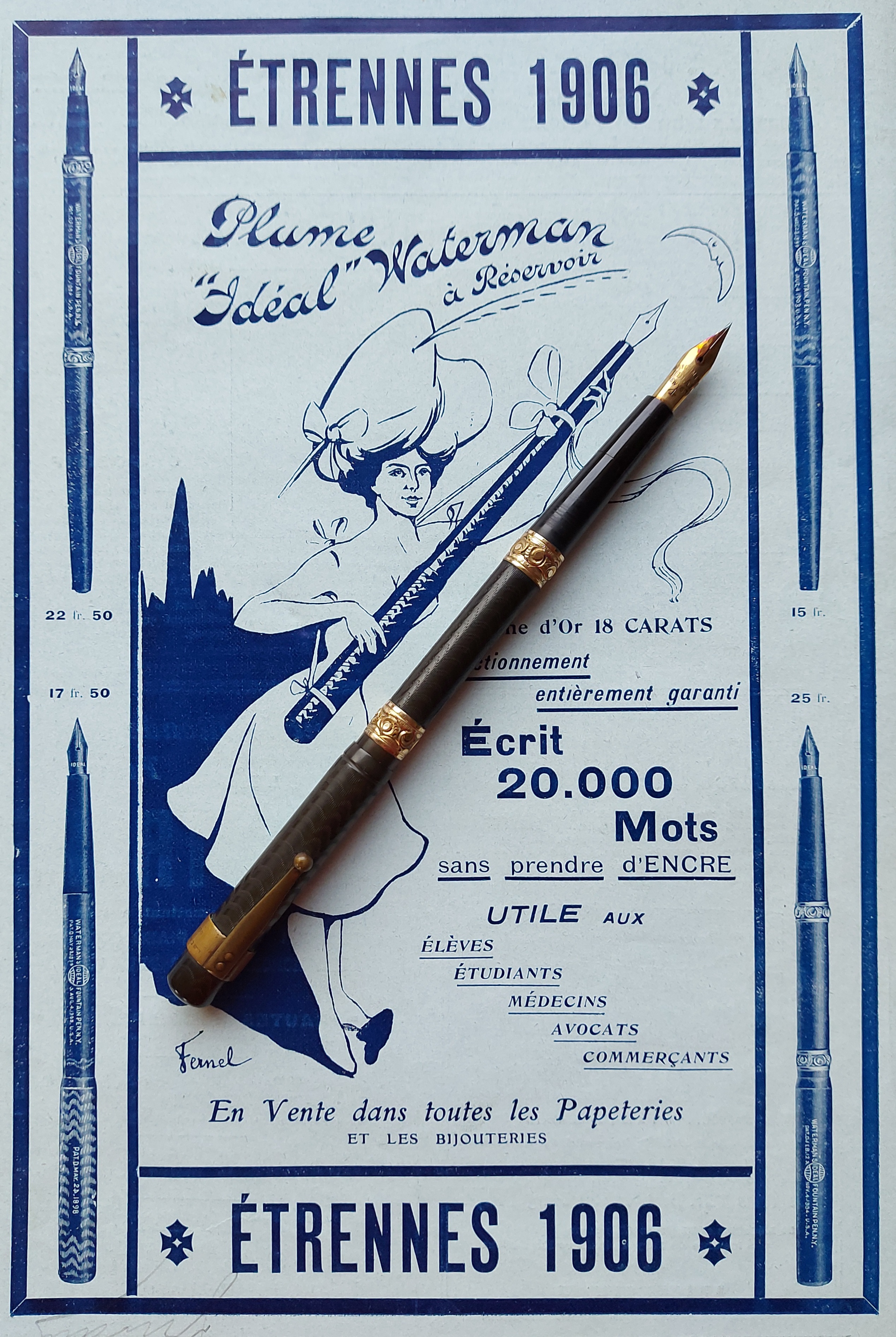 Se il limite "inferiore" per la datazione della penna è il 1903, anno dell'ultimo brevetto riportato, tuttavia non abbiamo pubblicità anteriori al 1905 in Italia: la prima è un mio ritrovamento del Febbraio 1905, dove compaiono per la prima volta Waterman e la Ditta L.&C. Hardtmuth, uno dei principali produttori mondiali di matite, leader di mercato con la celebre Koh-I-Noor, che disponeva di fabbriche, depositi e canali di distribuzione in molti Paesi nel mondo.