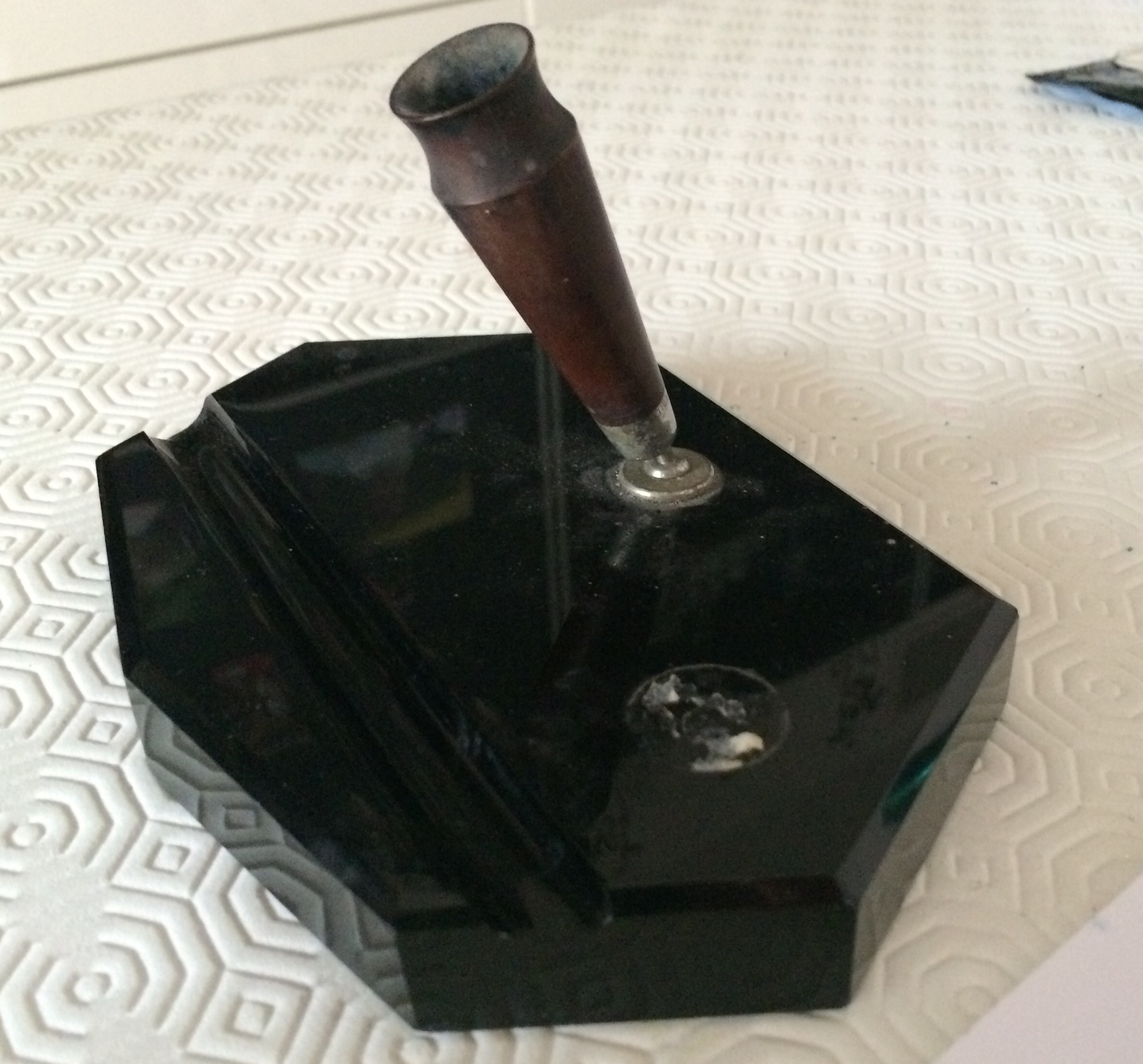 Il portapenne è in ebanite, mentre la base sembra una sorta di marmo...